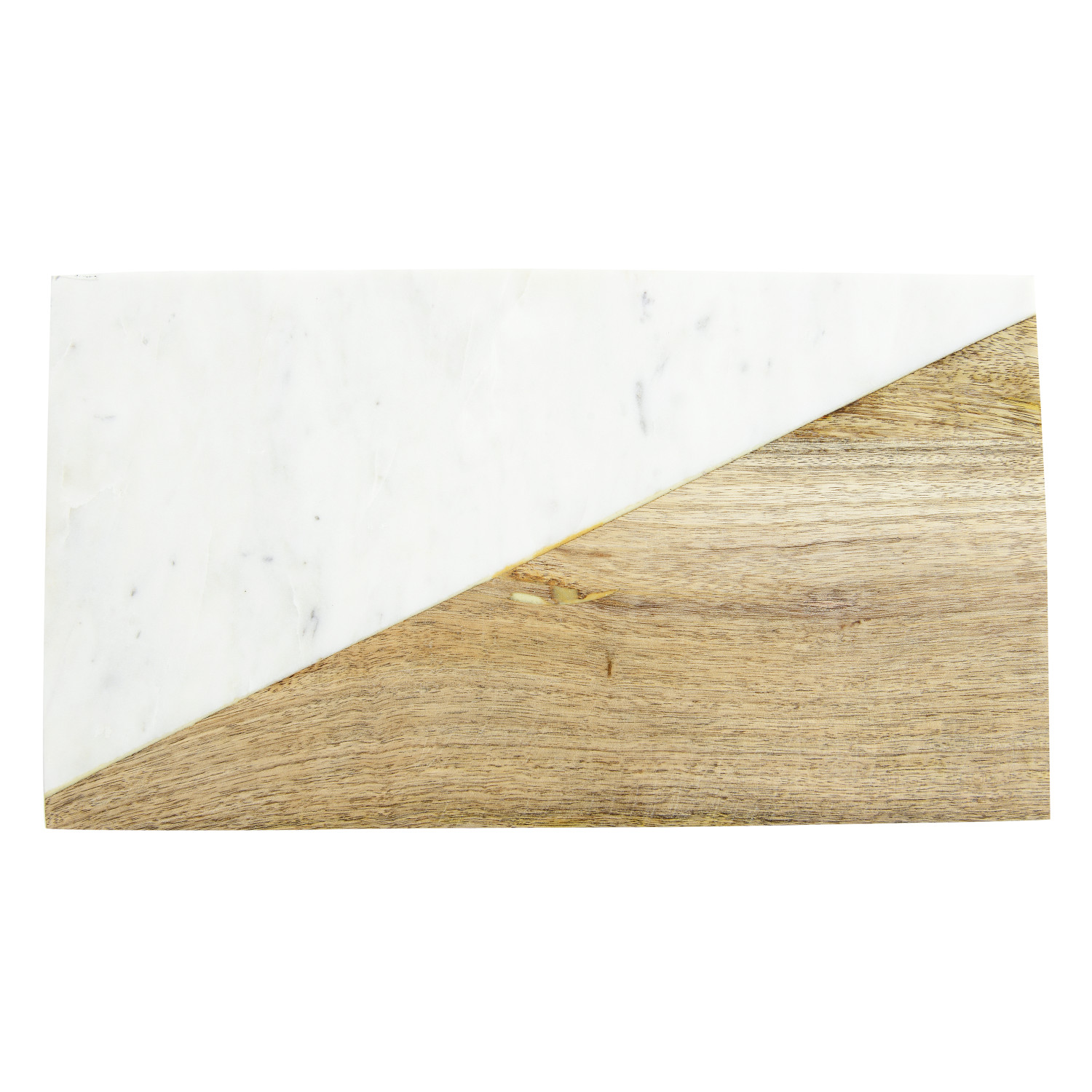Catalog Name: 14"L x 8"W Marble & Mango Wood Cheese/Cutting Board w/ Brass Feet, Natural