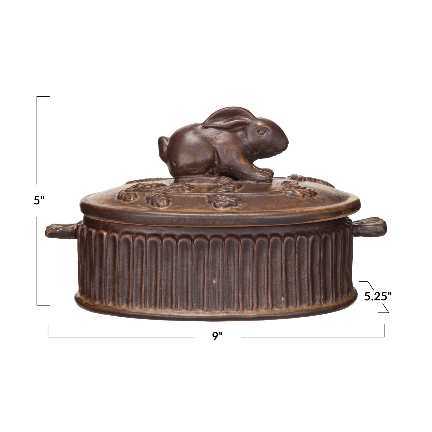 Catalog Name: 9"L x 5-1/4"W x 5"H 3 Cup Stoneware Baker w/ Rabbit, Reactive Glaze, Brown (Each One Will Vary)
