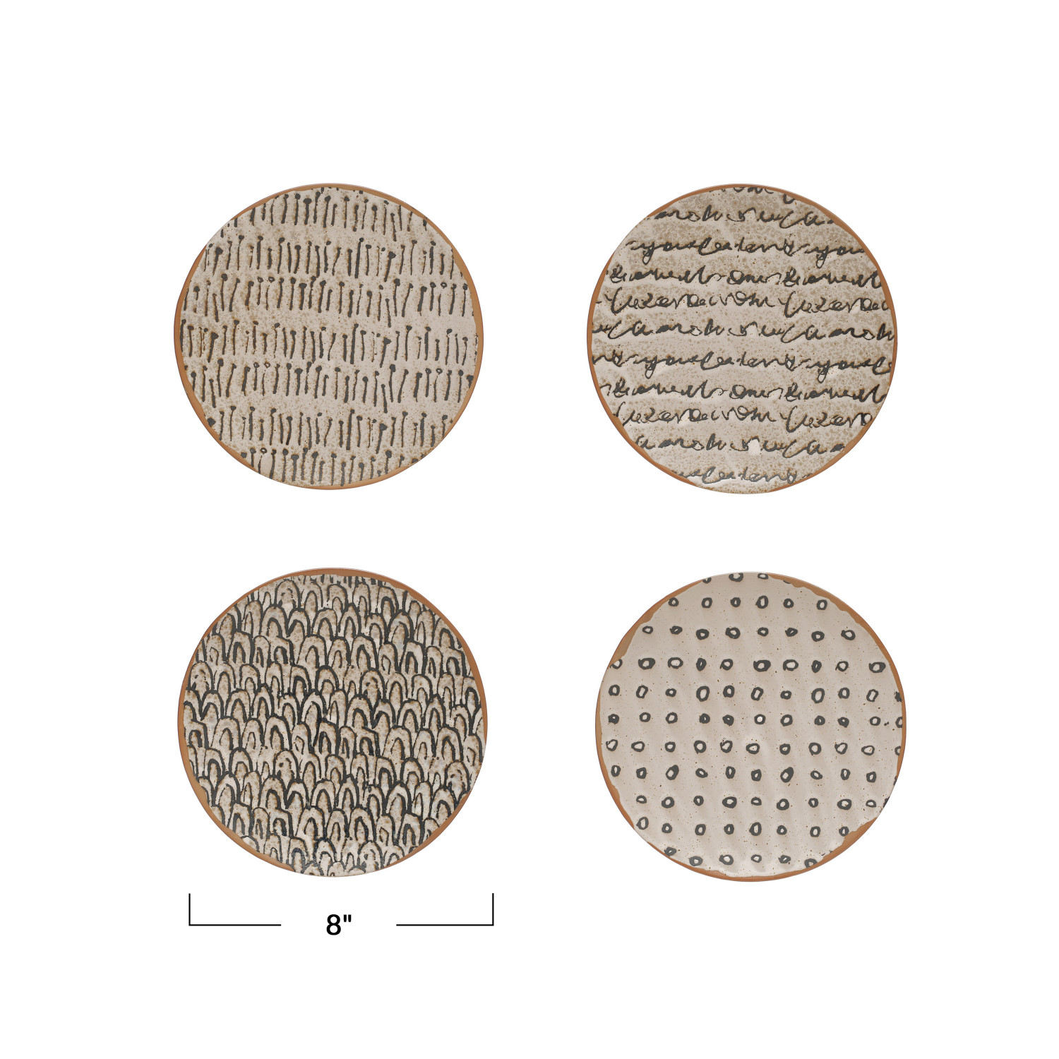 Stoneware Plate w/ Pattern, 4 Styles © (Each One Will Vary)
