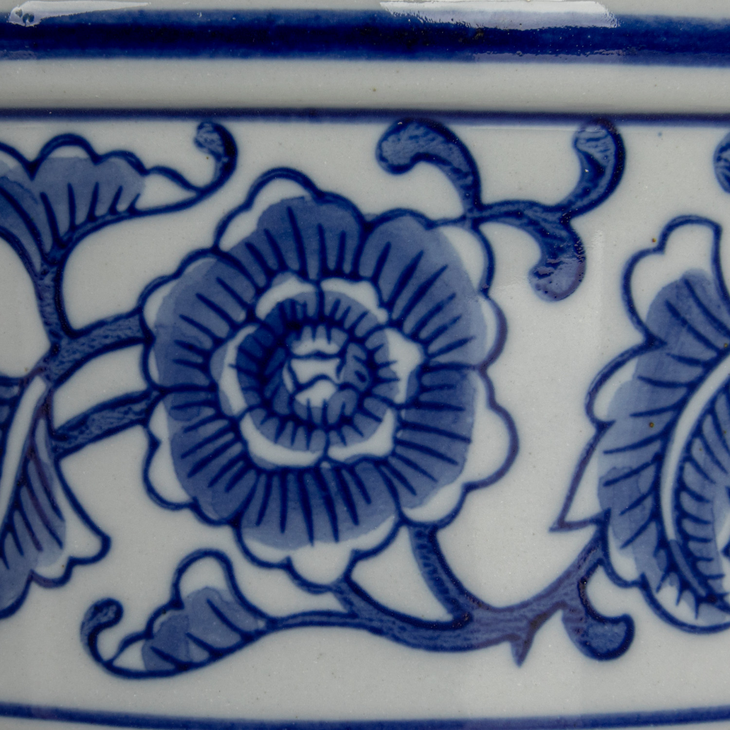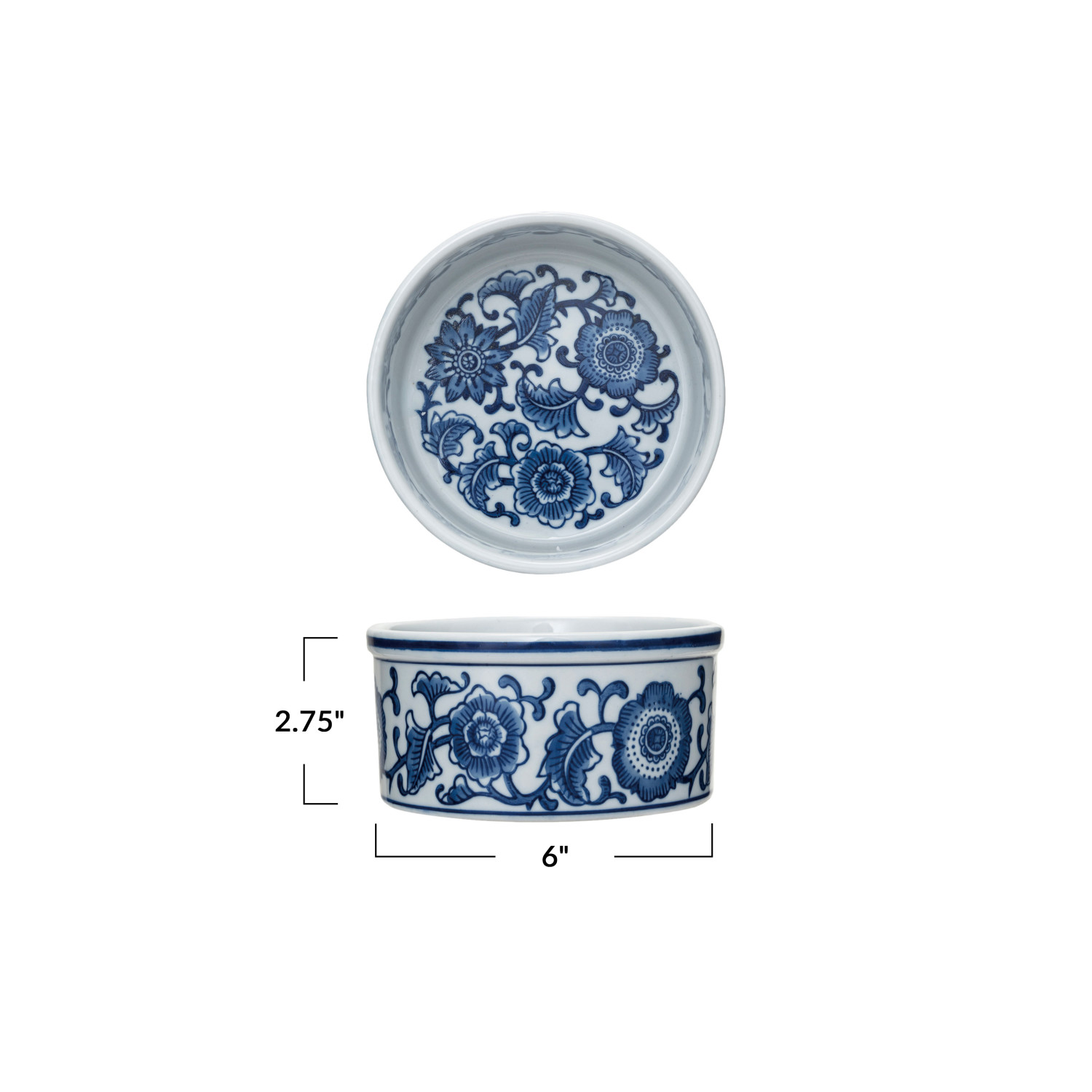 Catalog Name: 6" Round x 2-3/4"H 30 oz./3-3/4 Cup Stoneware Pet Bowl w/ Floral Design, Blue & White