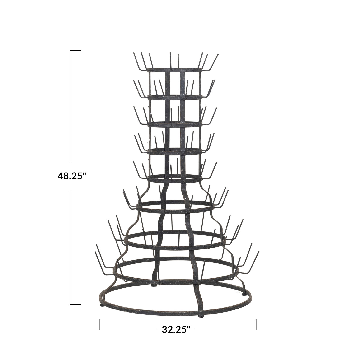 Catalog Name: 32-1/4" Round x 48-1/4"H Metal Vintage Reproduction Bottle Drying Rack w/ 76 Pegs, Distressed Zinc Finish, KD, Truck Ship