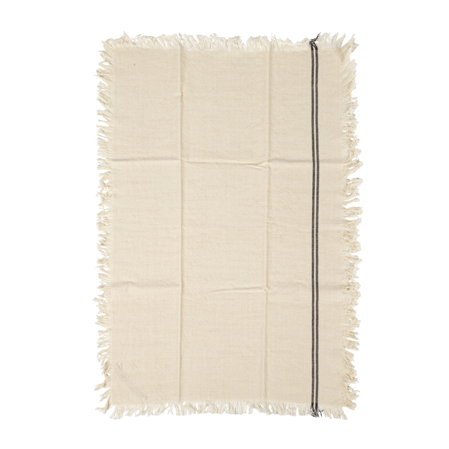 Catalog Name: 28"L x 18"W Woven Cotton Tea Towels w/ Stripes & Fringe, Natural & Black, Set of 2 Tied w/ Jute & Wood Button