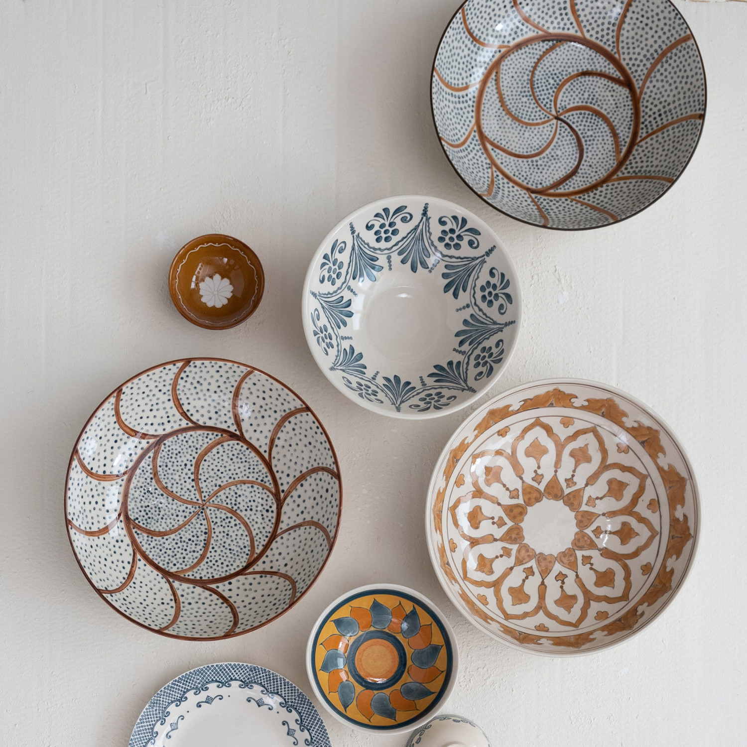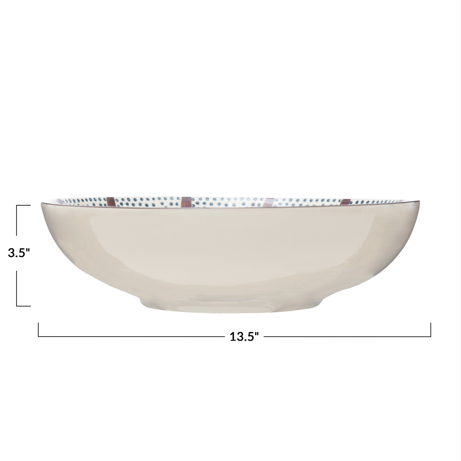 Hand-Painted Stoneware Serving Bowl w/ Pattern