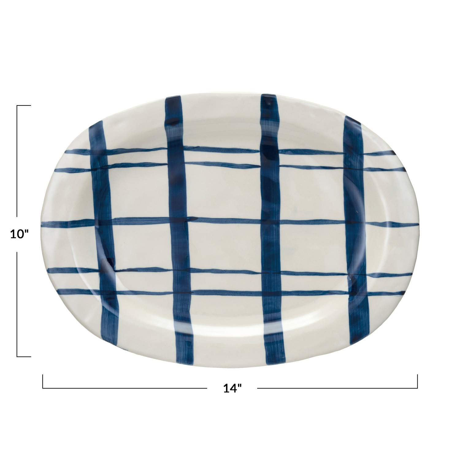 Catalog Name: 14"L x 10"W Oval Hand-Painted Stoneware Platter, Blue & White