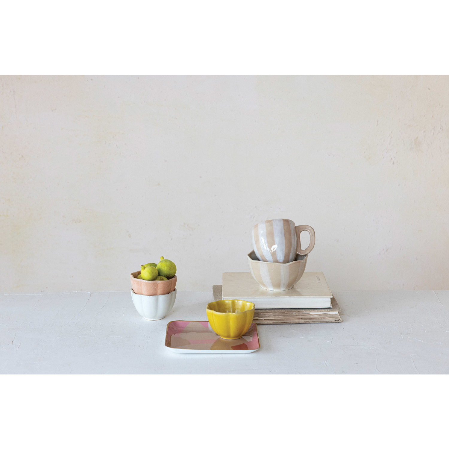 Catalog Name: 3-3/4" Round x 2-1/2"H Stoneware Flower Shaped Bowl, 3 Colors