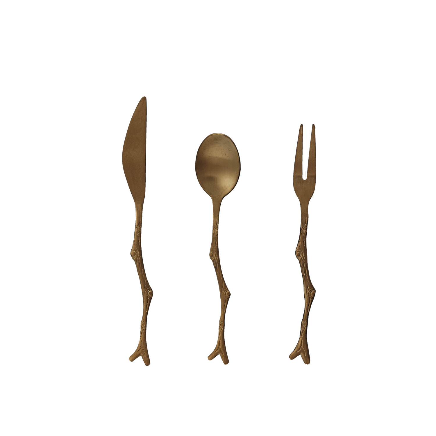 Catalog Name: 5-1/4"L Stainless Steel Appetizer Utensils w/ Twig Shaped Handles, Gold Finish, Set of 3