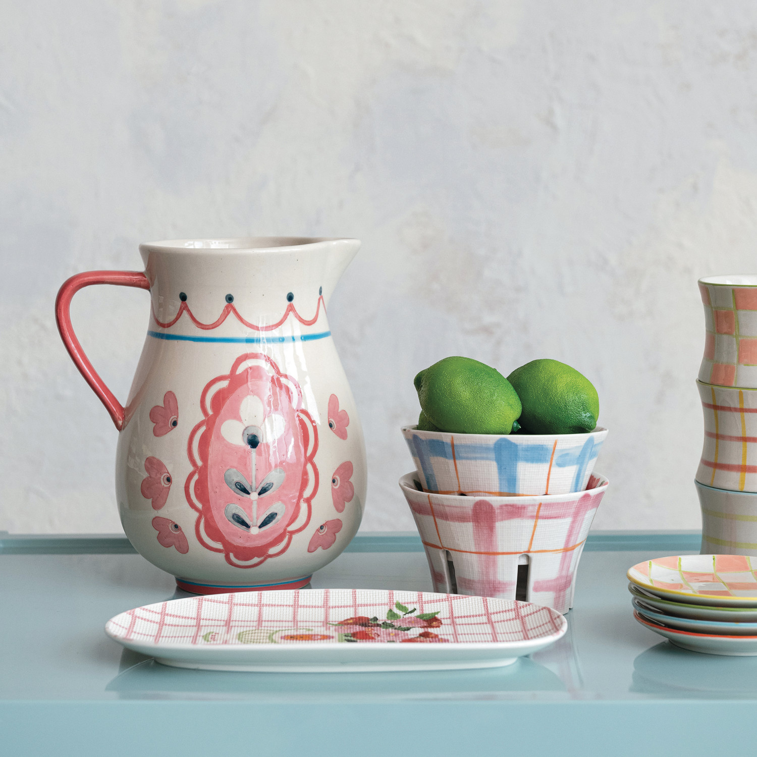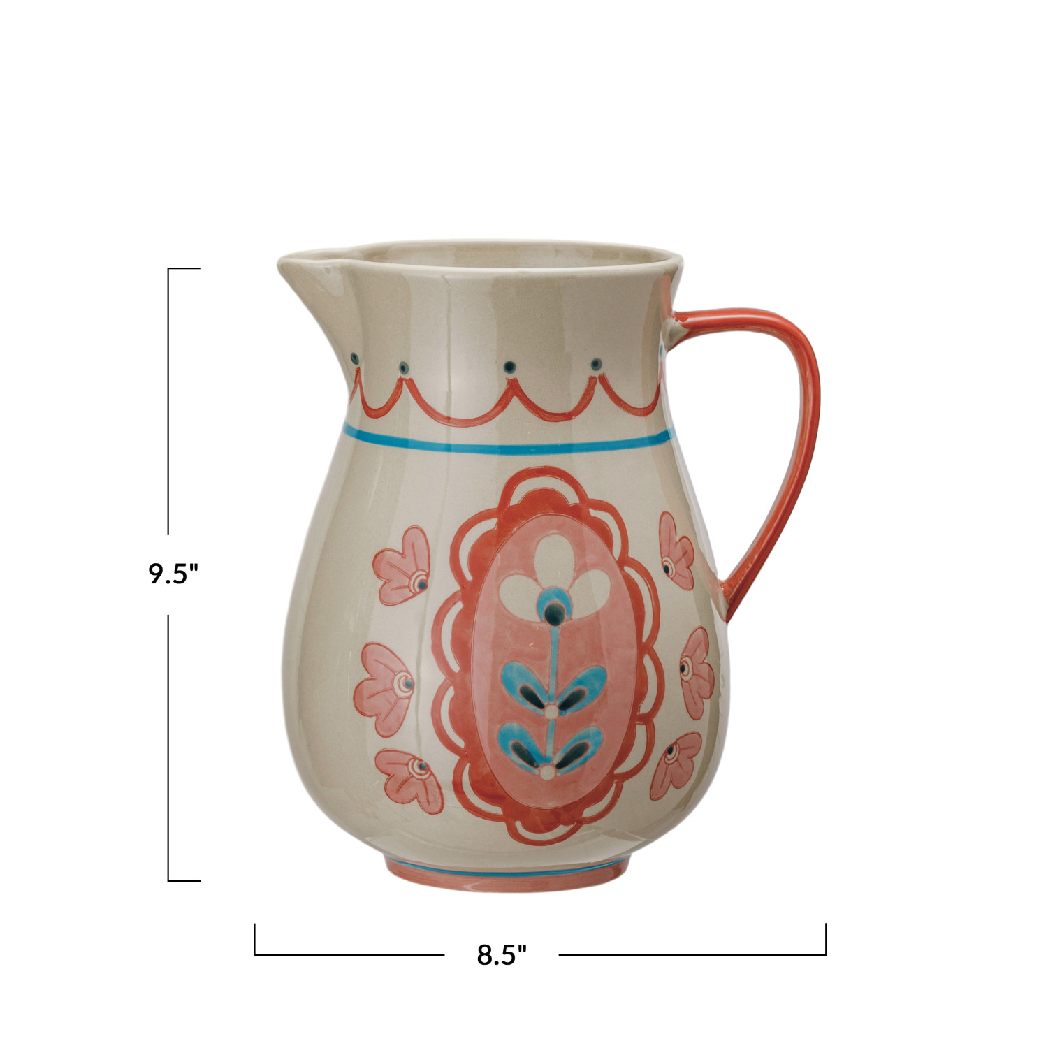Catalog Name: 8-1/2"L x 6-3/4"W x 9-1/2"H 3 Quart Hand-Painted Stoneware Pitcher w/ Floral Image, Multi Color ©