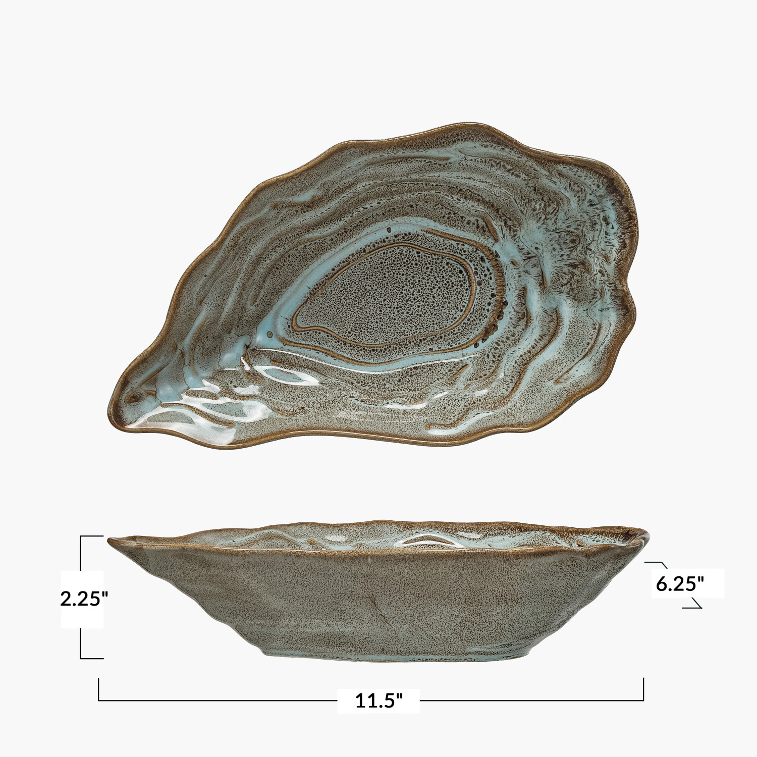 Catalog Name: 11-1/2"L x 6-1/4"W x 2-1/4"H Stoneware Oyster Shell Shaped Bowl, Reactive Glaze, Grey (Each One Will Vary)