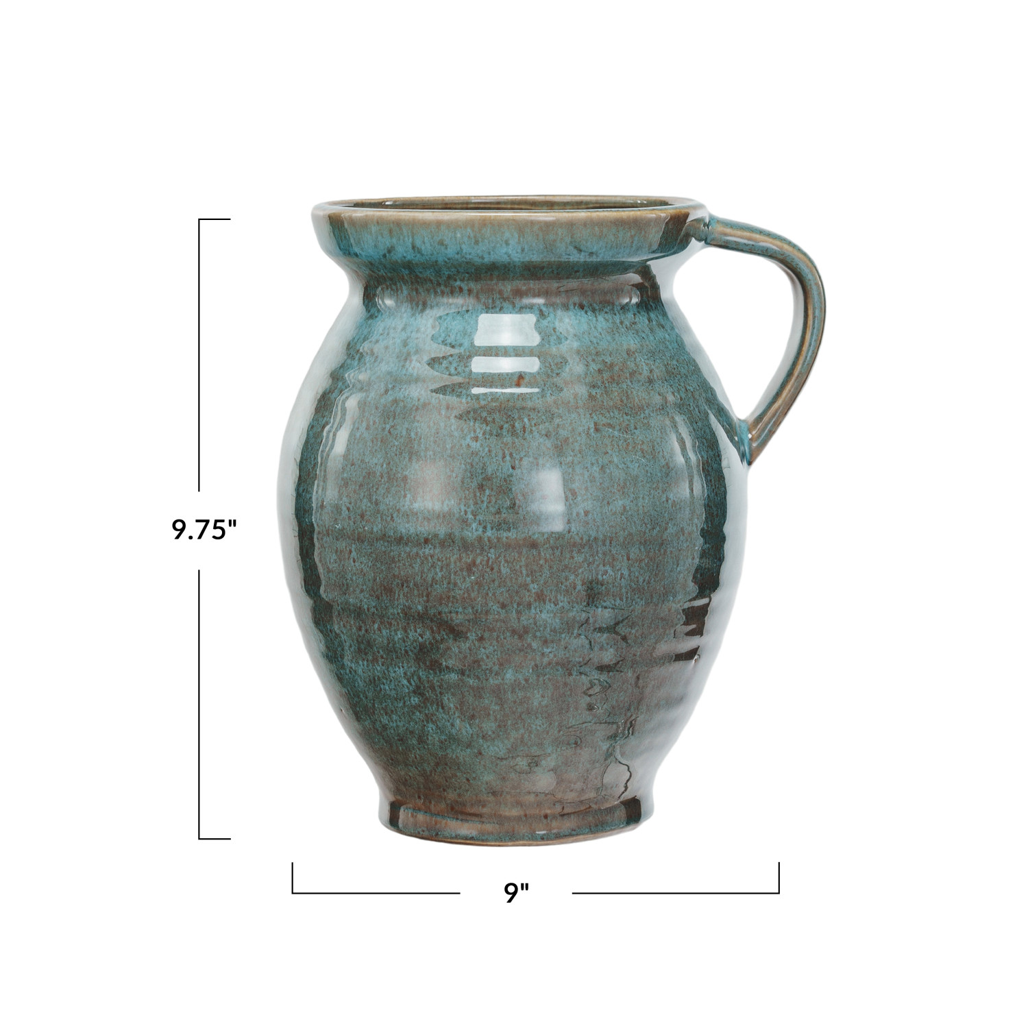 Catalog Name: 9"L x 7-1/2"W x 9-3/4"H 4 Quart Stoneware Jug w/ Handle, Reactive Glaze, Blue (Each One Will Vary)