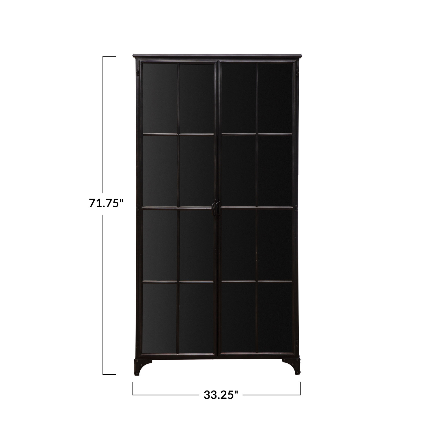 Catalog Name: 33-1/4"W x 16-1/2"D x 71-3/4"H Metal Cabinet w/ 2 Glass Doors & 4 Shelves, Black, KD, Truck Ship