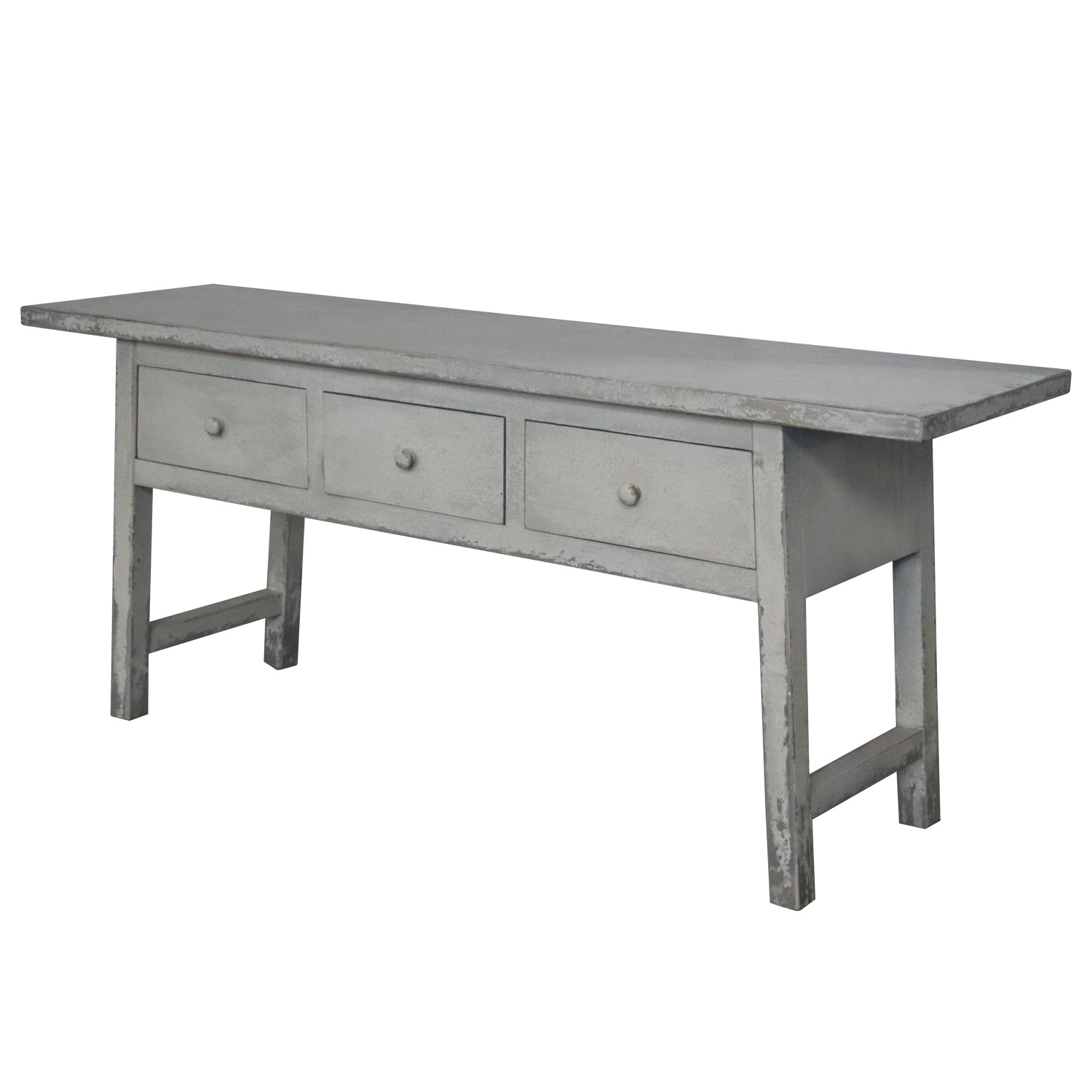 Catalog Name: 57-3/4"W x 15-3/4"D x 24-1/2"H Reclaimed Wood Table w/ 3 Drawers, Distressed White, KD, Truck Ship