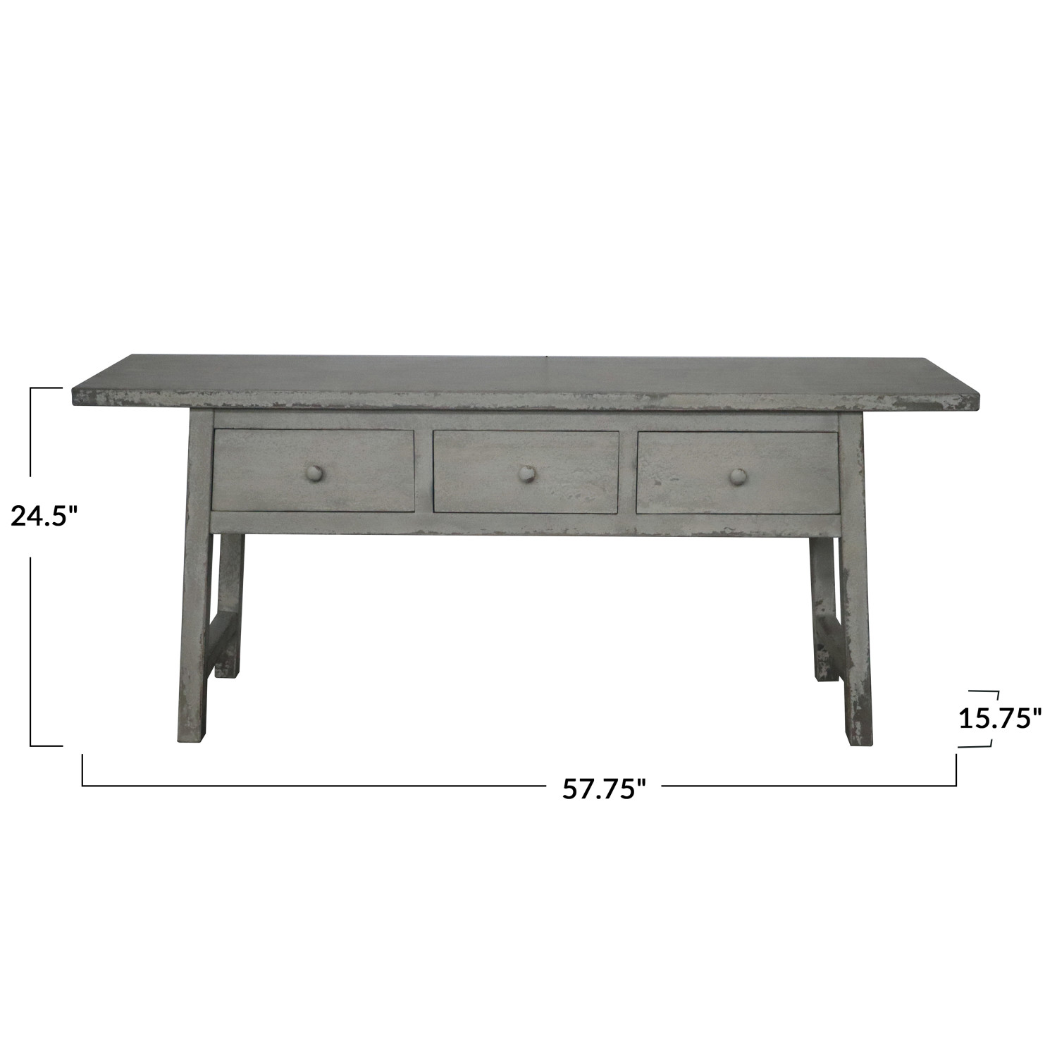 This Reclaimed Wood Console Table, finished in distressed white, offers a blend of rustic charm and practicality. The 3 drawers provide discreet storage, while the spacious tabletop serves as the perfect stage for every decor. Measuring 57.75 inches wide, 15.75 inches deep, and 24.5 inches high, it's designed to fit seamlessly into a variety of spaces. The table's knockdown design ensures easy transport and assembly, making it a convenient and stylish addition to any home. With a weight capacity of 75 pounds, it's as functional as it is beautiful, ready to hold cherished items and memories.
