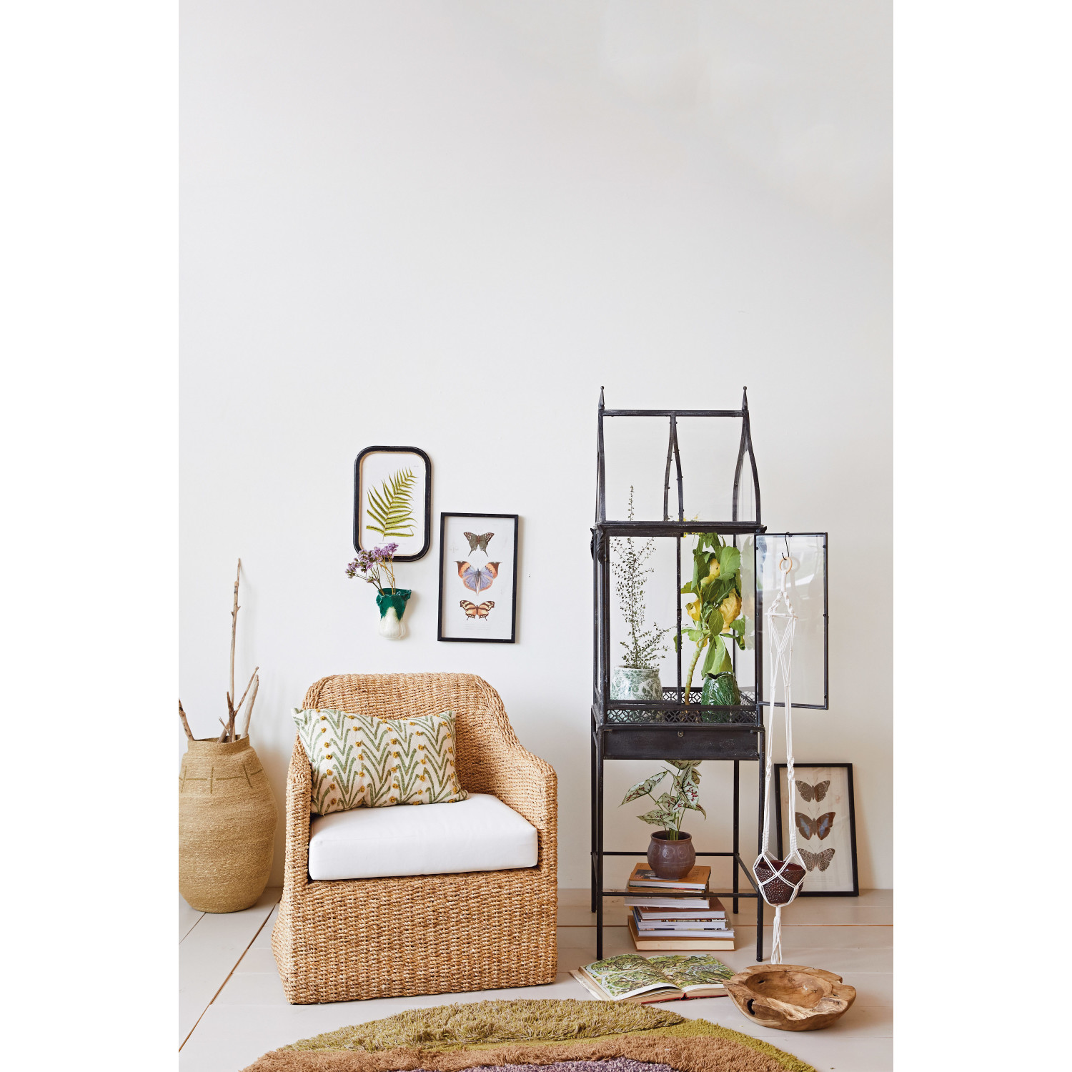 Woven Water Hyacinth & Acacia Wood Chair w/ Removable Cushion