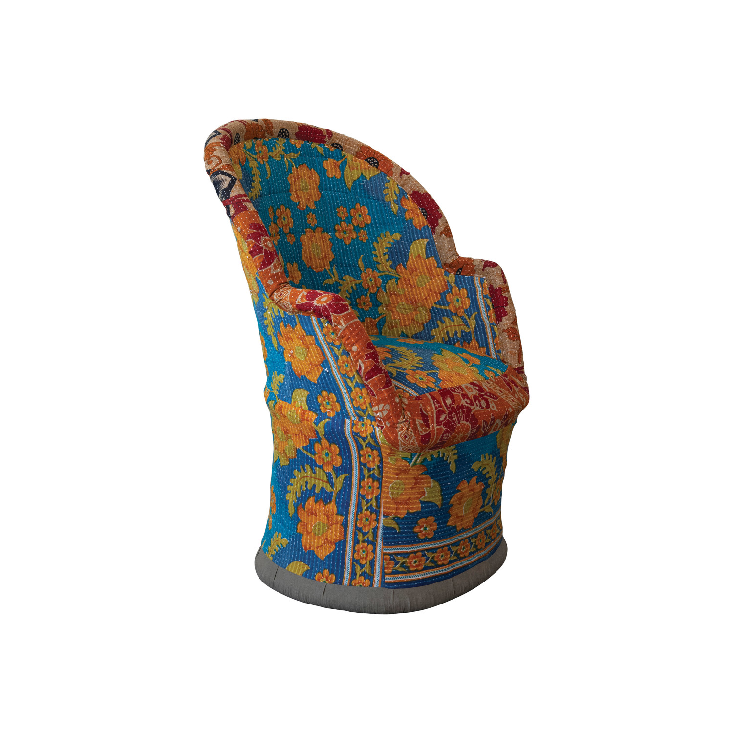 Handmade Vintage Cotton Kantha Upholstered Cane Chair (Each Pattern Will Vary)