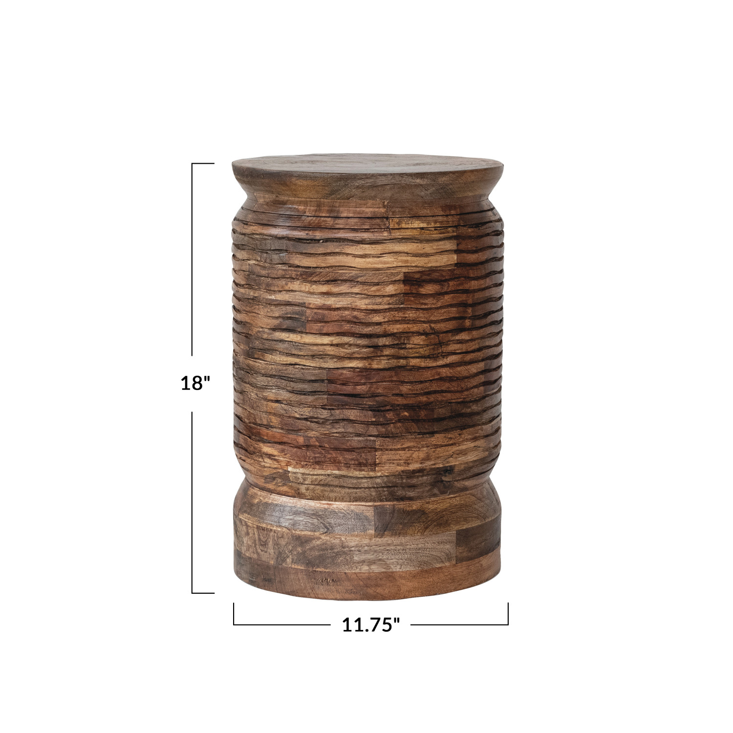 Catalog Name: 11-3/4" Round x 18"H Hand-Carved Mango Wood Table/Stool, Natural