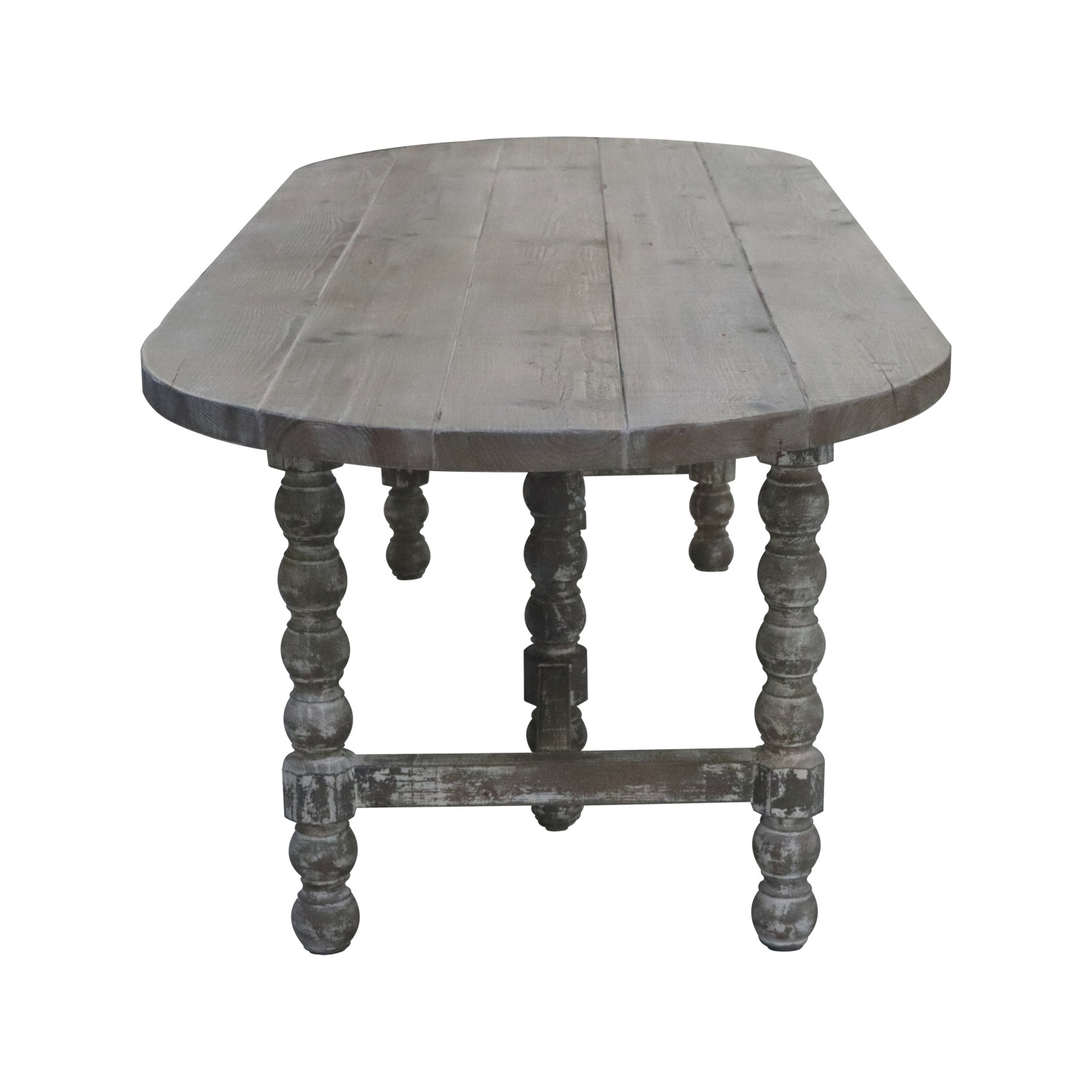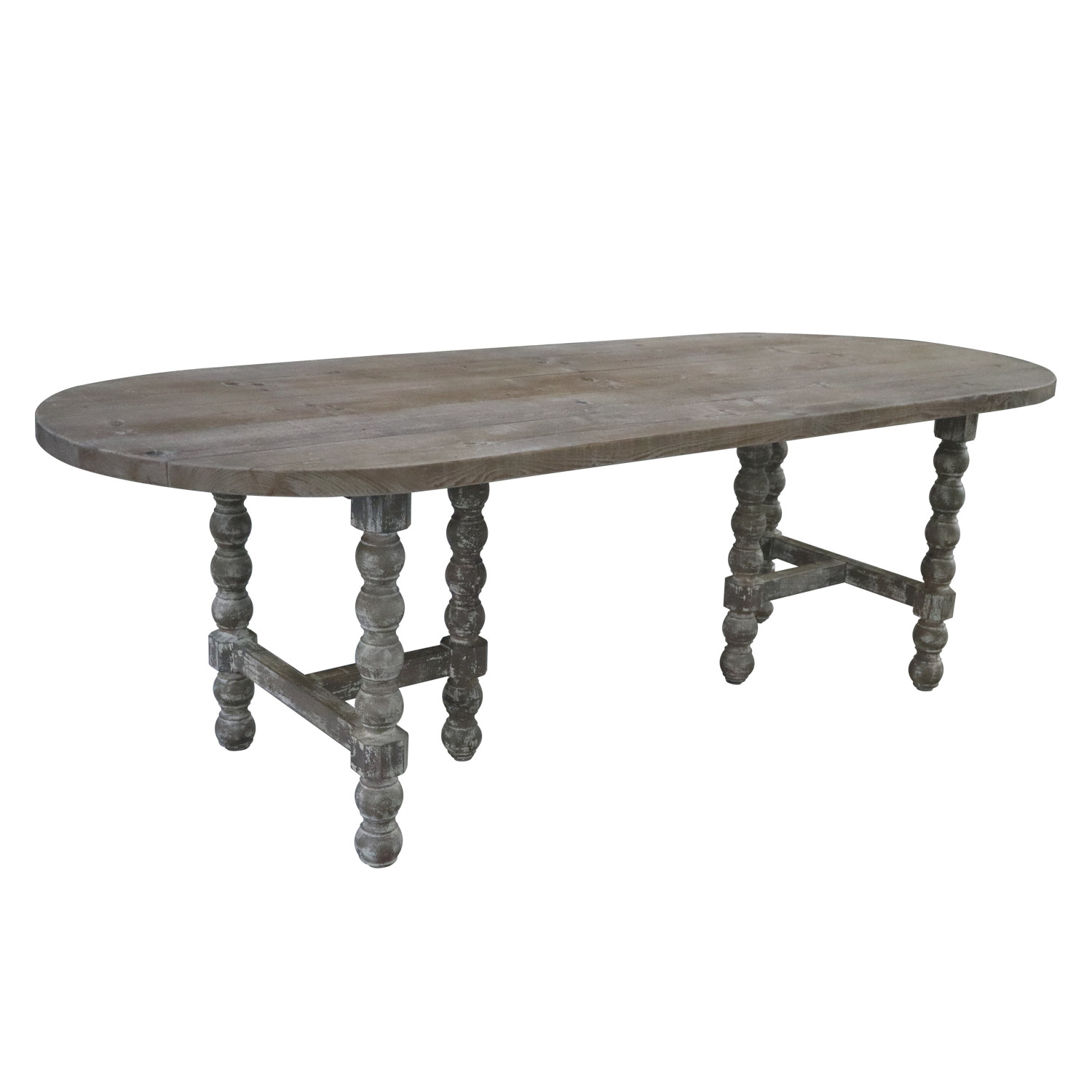 This Oval Dining Table stands out with its whitewashed finish, offering a fresh take on classic farmhouse design. Crafted from pine wood, it exudes a rustic yet refined aesthetic that complements any French country-inspired interior. The table's generous dimensions, 96.75 inches long by 37.25 inches wide by 30 inches high, accommodate large family dinners and festive gatherings, supporting up to 260 pounds. Delivered via truck ship in a knockdown format, it promises an easy setup, inviting anyone to create a welcoming space for all dining occasions.