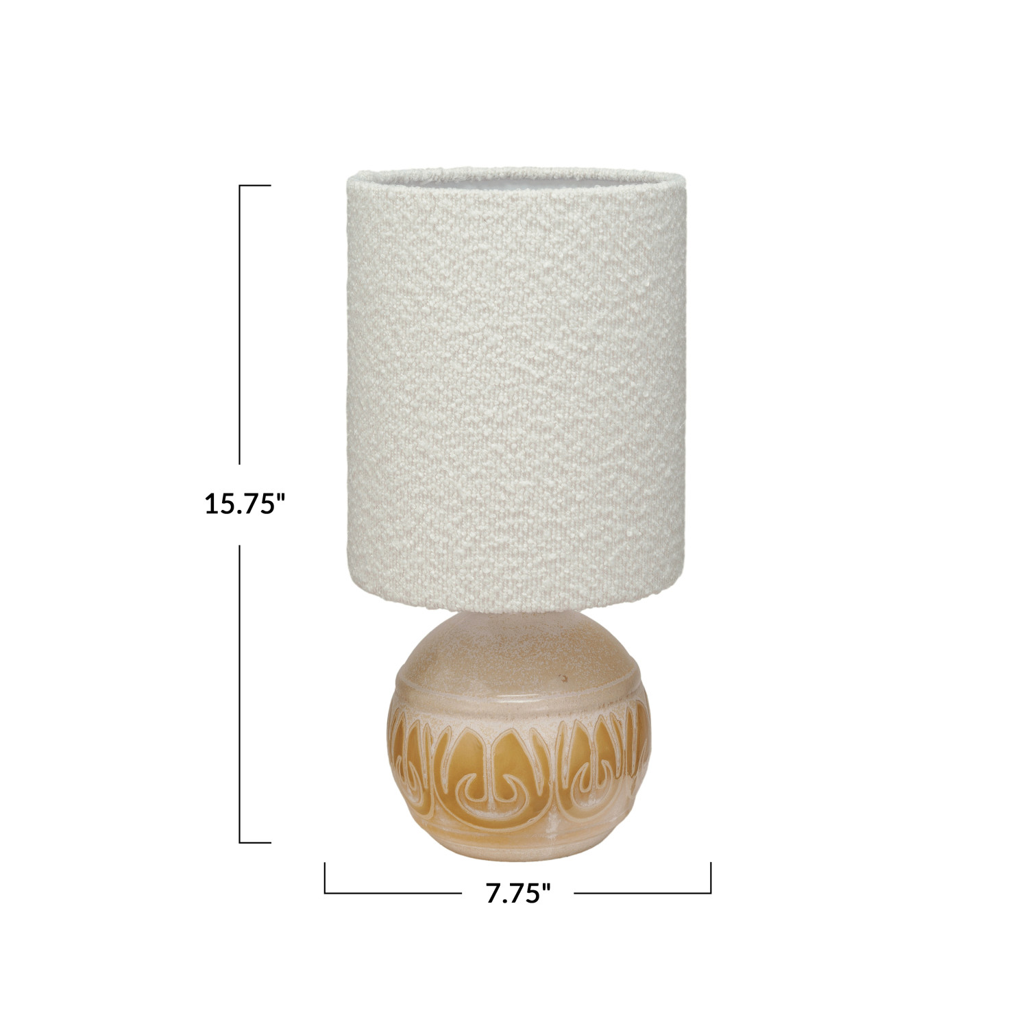 Catalog Name: 7-3/4" Round x 15-3/4"H Embossed Stoneware Table Lamp w/ Linen Bouclé Shade, Yellow & Cream Color