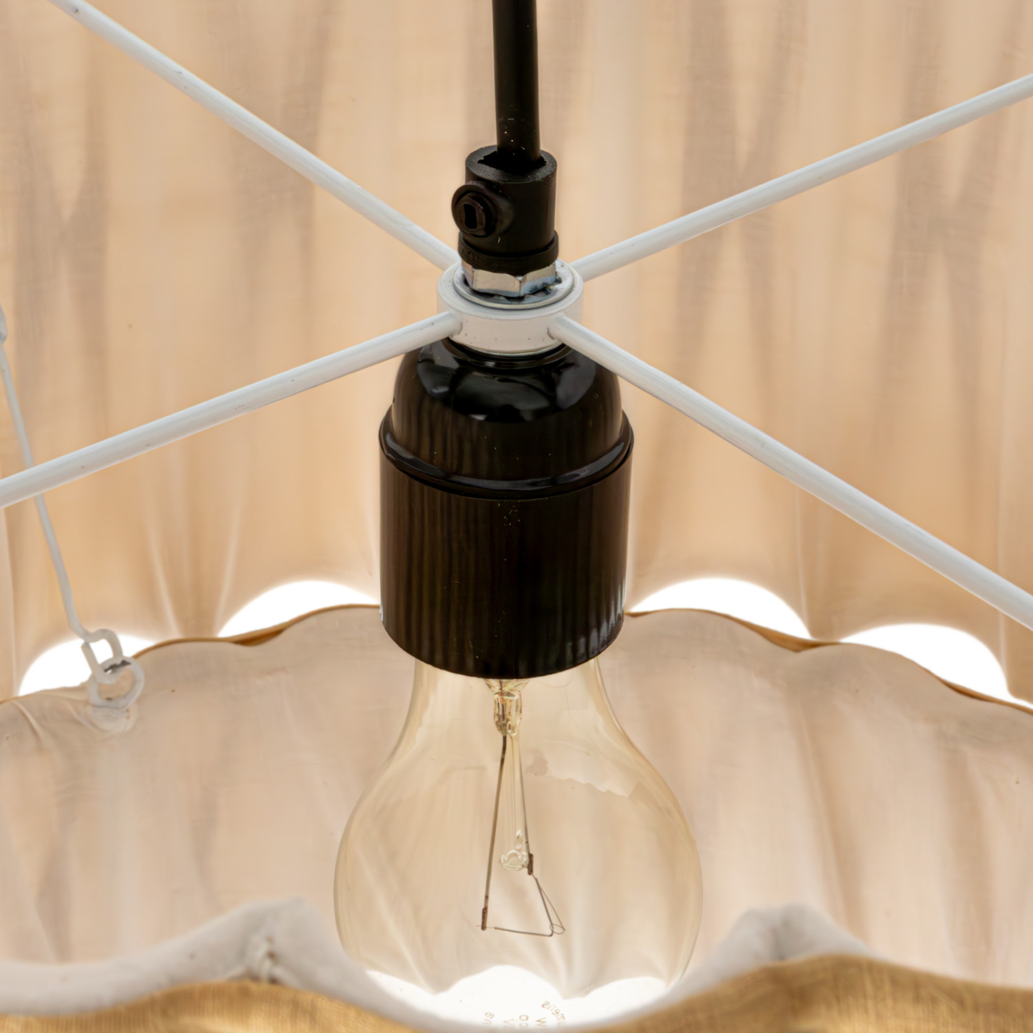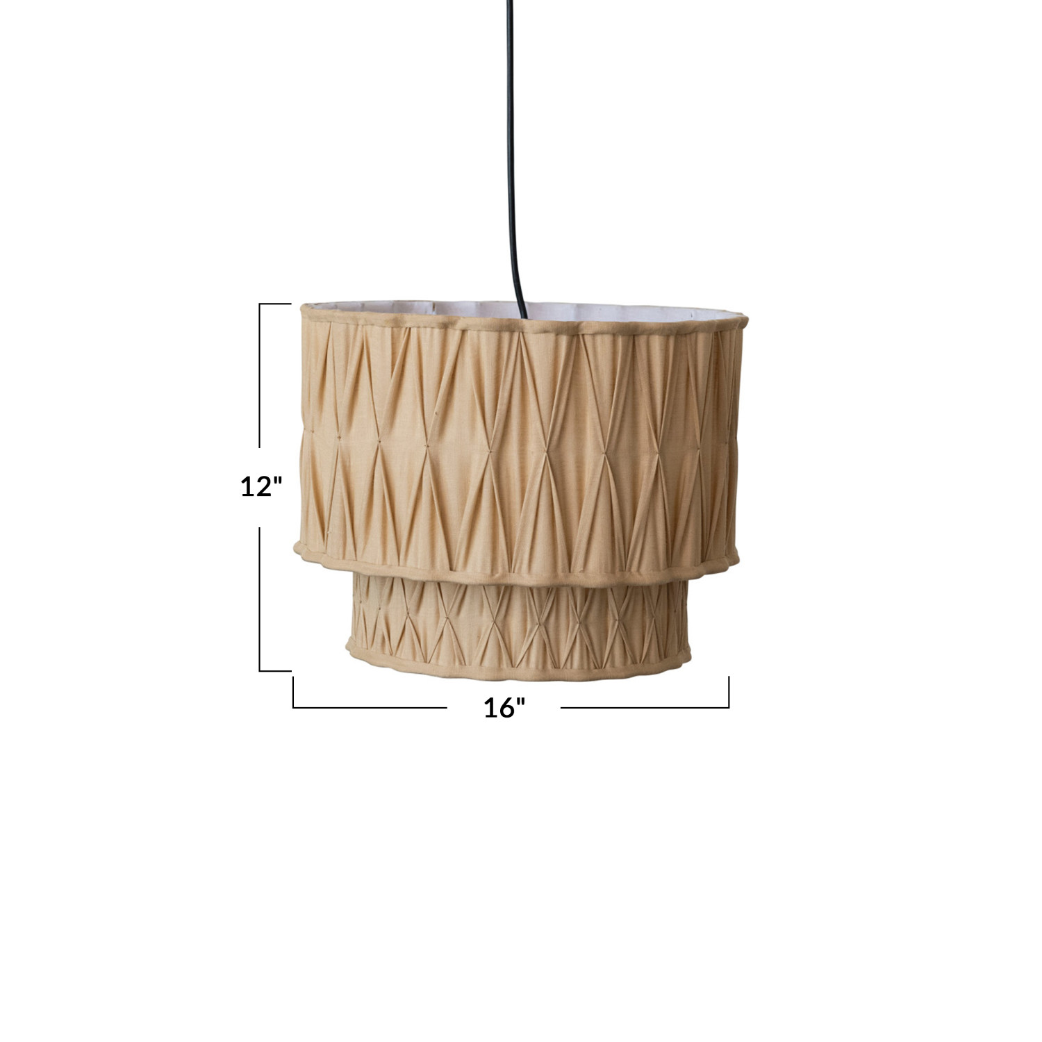 Catalog Name: 16" Round x 12"H Metal & Cotton Slub Pleated & Scalloped Pendant Lamp, 6' Cord, Tan Color (Hardwire Only)