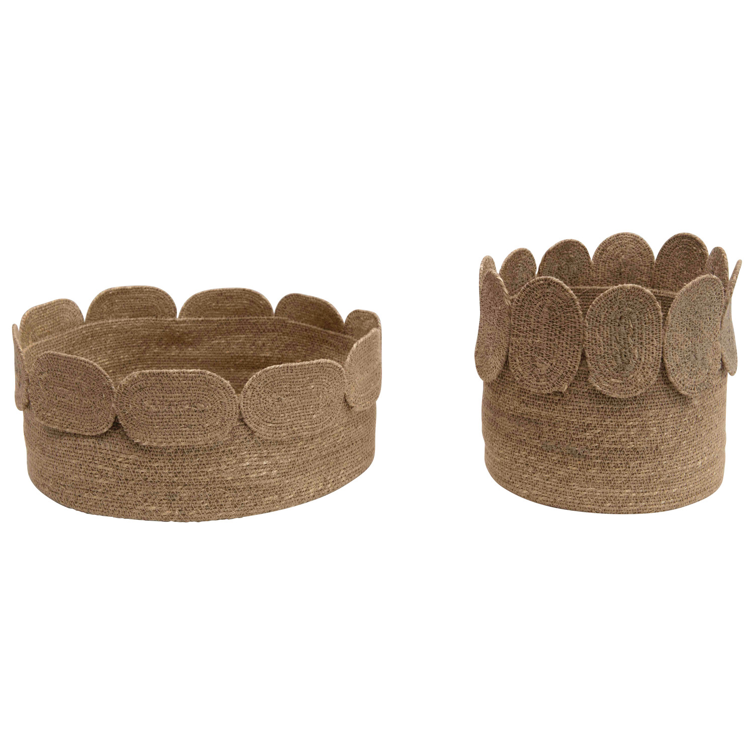 This set of handwoven natural seagrass baskets are beautiful decoration pieces with the appliqued oval accents attached around the rims. Use them for covers over potted plants, crafts or miscellaneous items. If taking a trip, pack several items inside and then use them for a catch-all in the hotel room. Place games or toys inside for the kids and they can easily be accessible for putting the items away when not in use.
