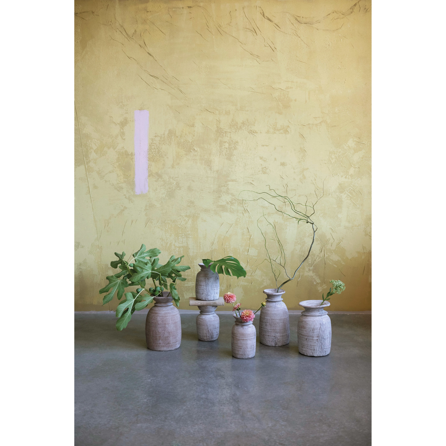 This artisanal decorative jug showcases a rustic reclaimed wood construction in a naturally variating distressed finish. Reclaimed wood decorative jug in naturally variating distressed finish. Add a touch of natural beauty to any gathering space with this one-of-a-kind jug. Made from 100% reclaimed wood.