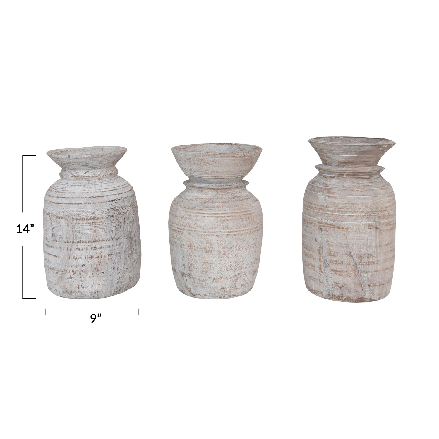 Catalog Name: Approximately 8" Round x 13"H Found Decorative Wood Jug, Whitewashed (Each One Will Vary)