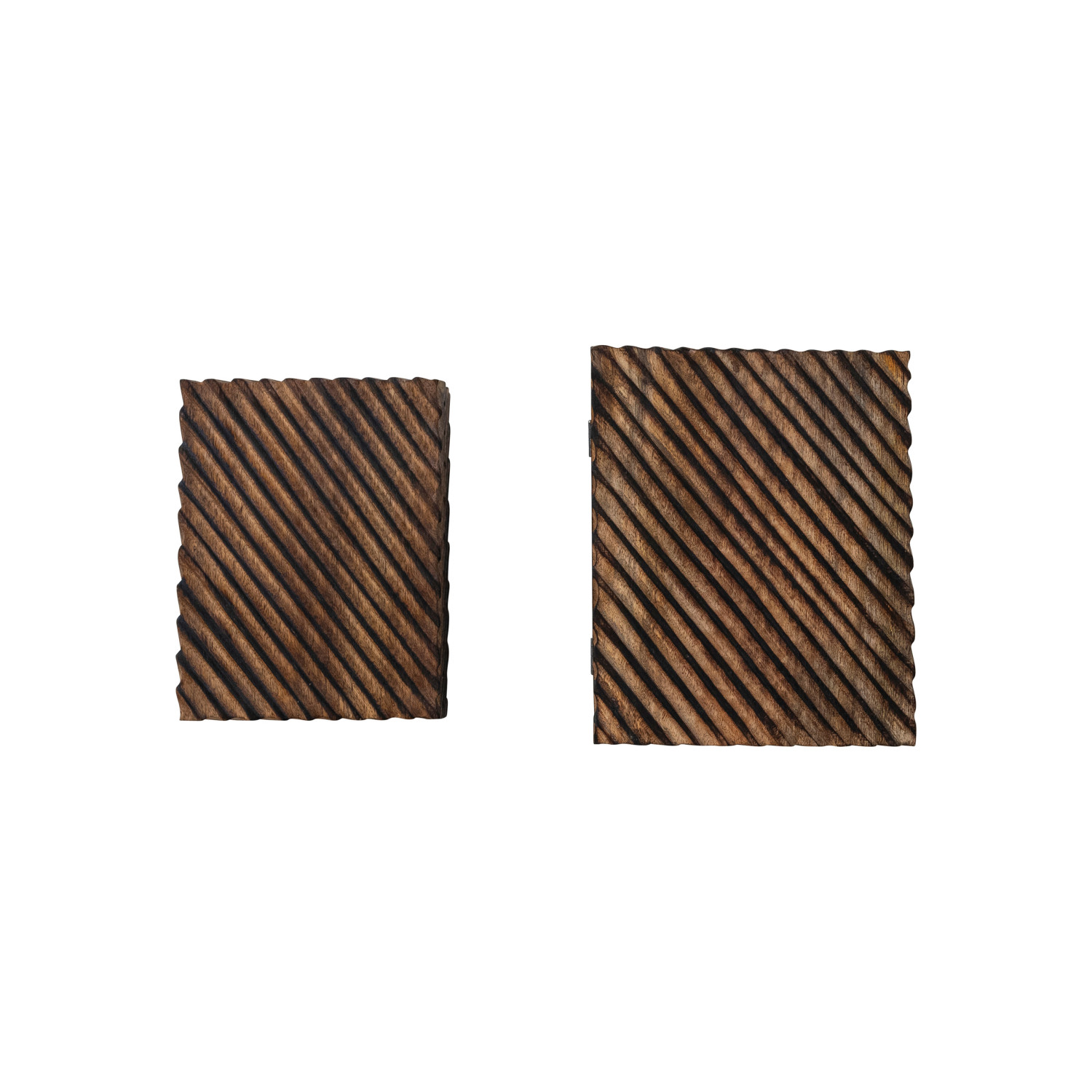 Catalog Name: 10"L x 8"W x 4"H & 9"L x 7"W x 2-1/2"H Carved MDF & Mango Wood Nesting Boxes, Burnt Finish, Set of 2