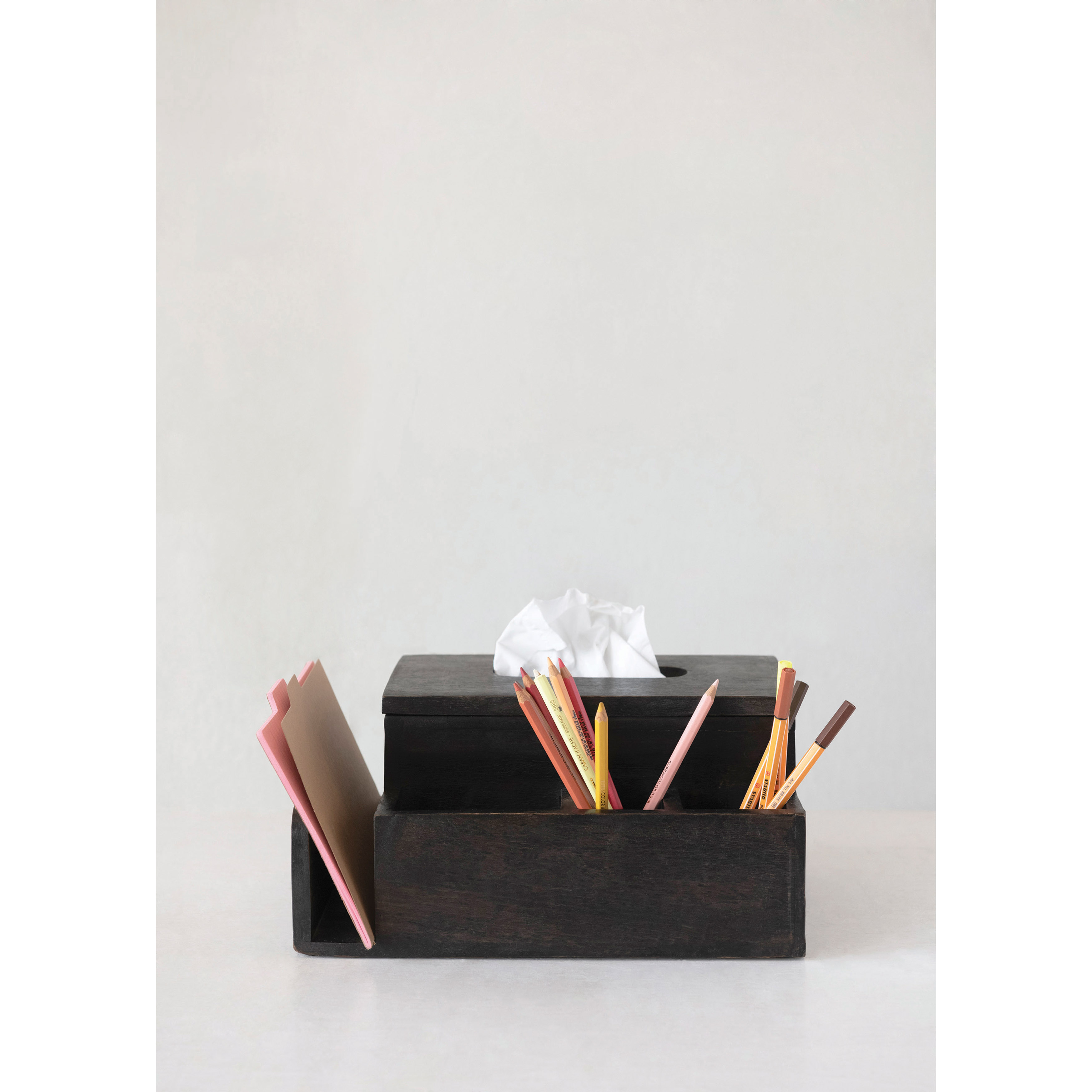 Catalog Name: 11-1/4"L x 6-1/4"W x 8"H Mango Wood Tissue Box Holder w/ 4 Compartments, Black