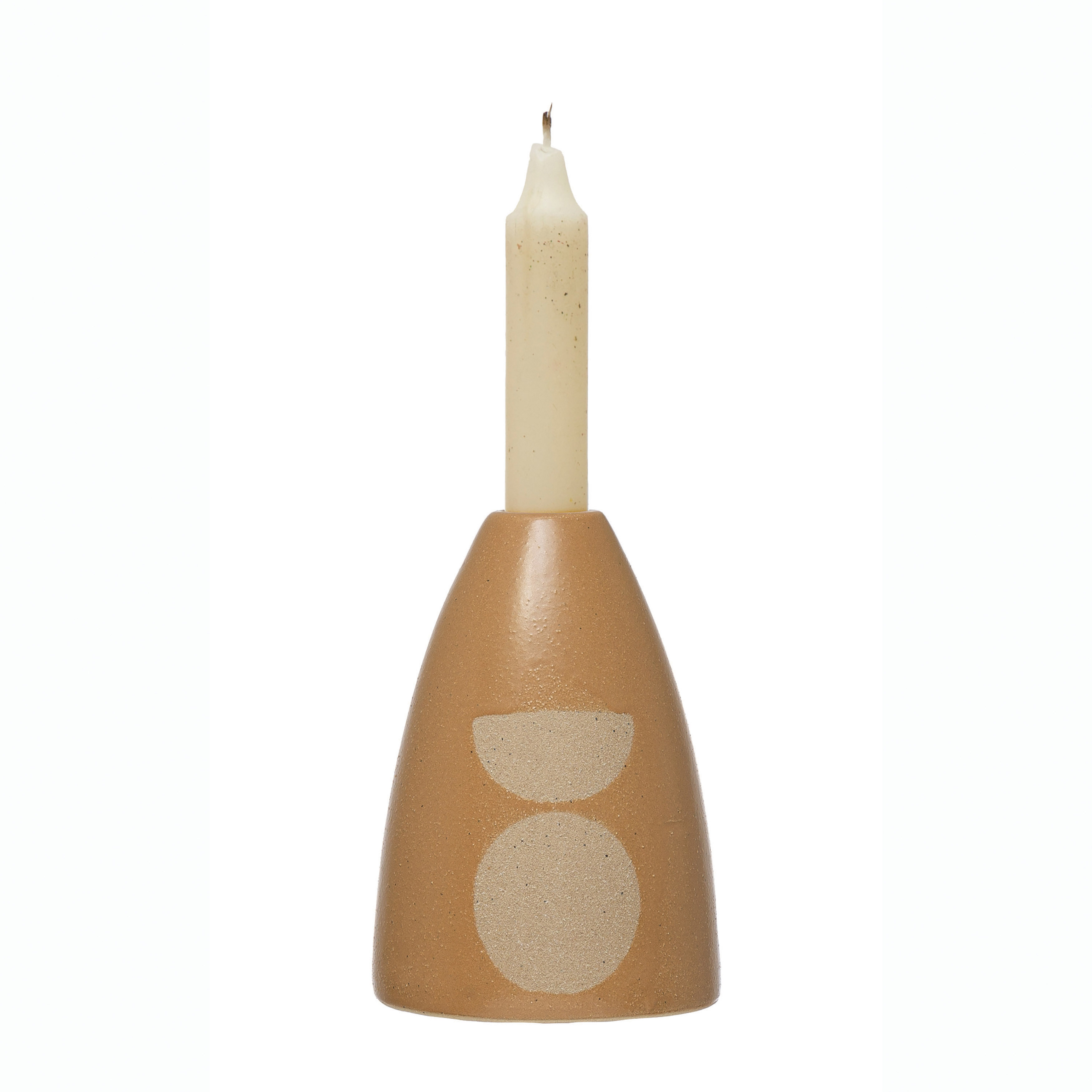 Stoneware Taper Holder with Circle Design