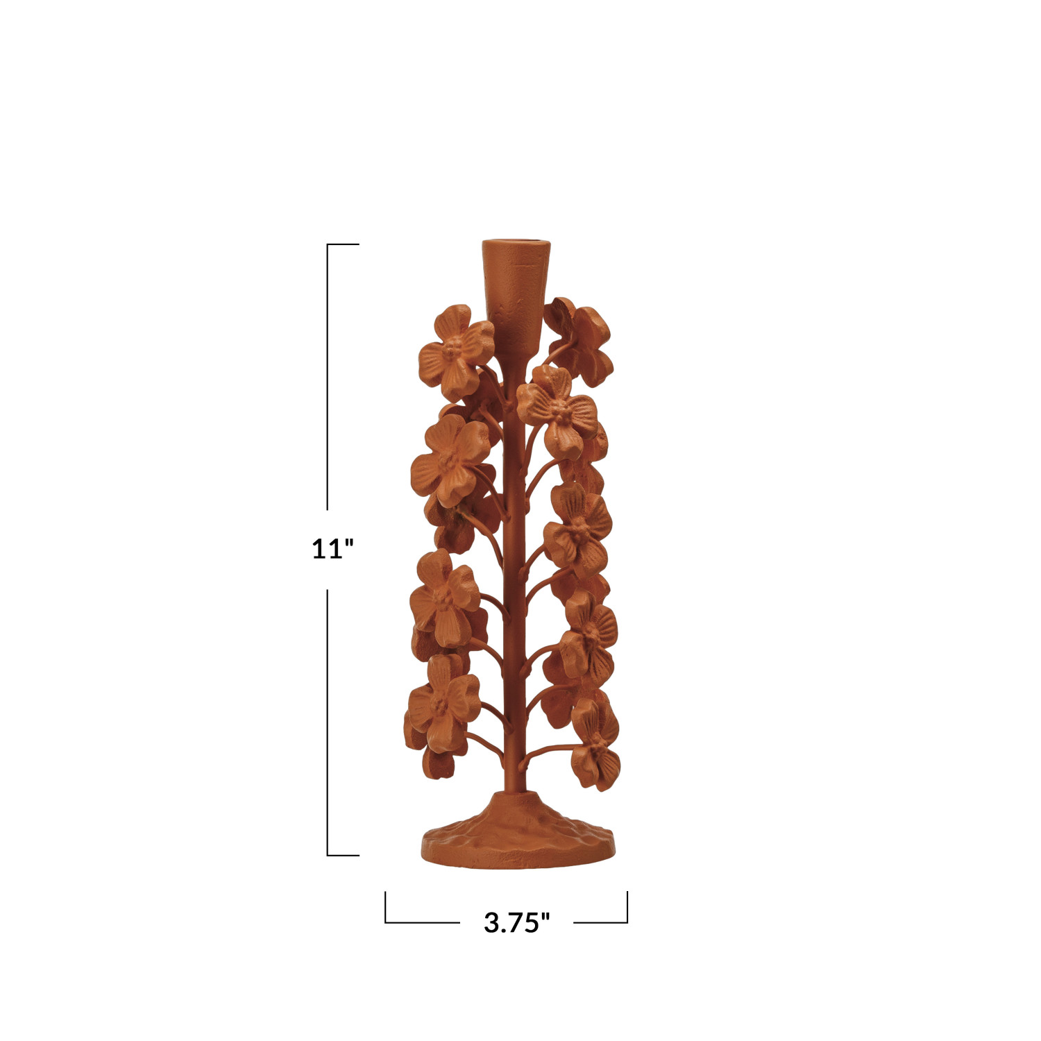 Catalog Name: 3-3/4" Round x 11"H Cast Iron Flowers Taper Holder, Terra-cotta Color
