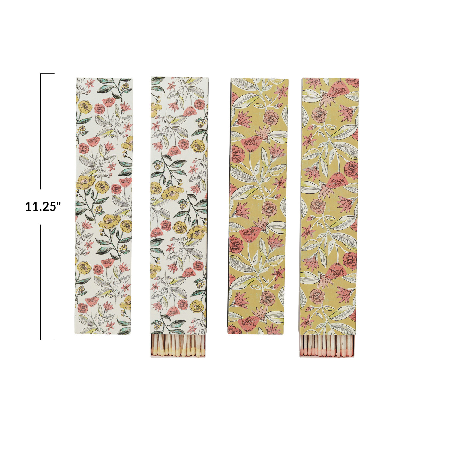 Catalog Name: 11-1/4"L Safety Fireplace Matches in Matchbox w/ Floral Pattern, Multi Color, 2 Styles ©