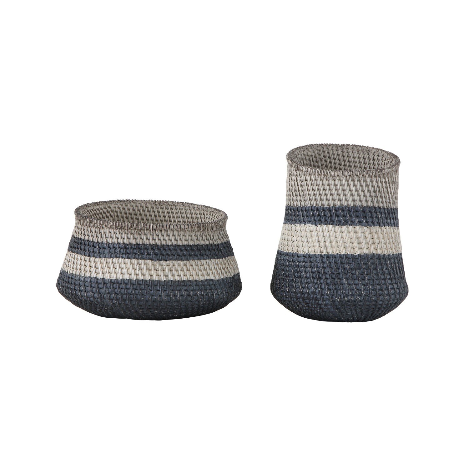 Catalog Name: 7-1/2" Round x 4-1/4"H Resin Basketweave Planter, Black Stripes