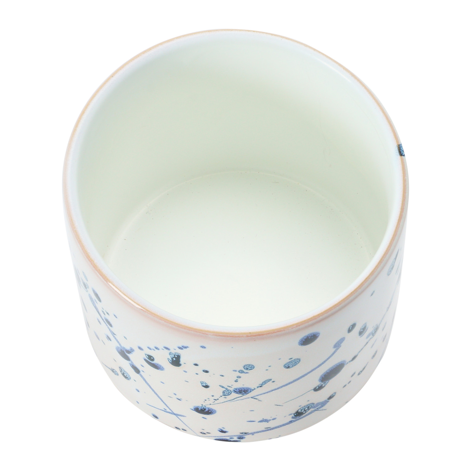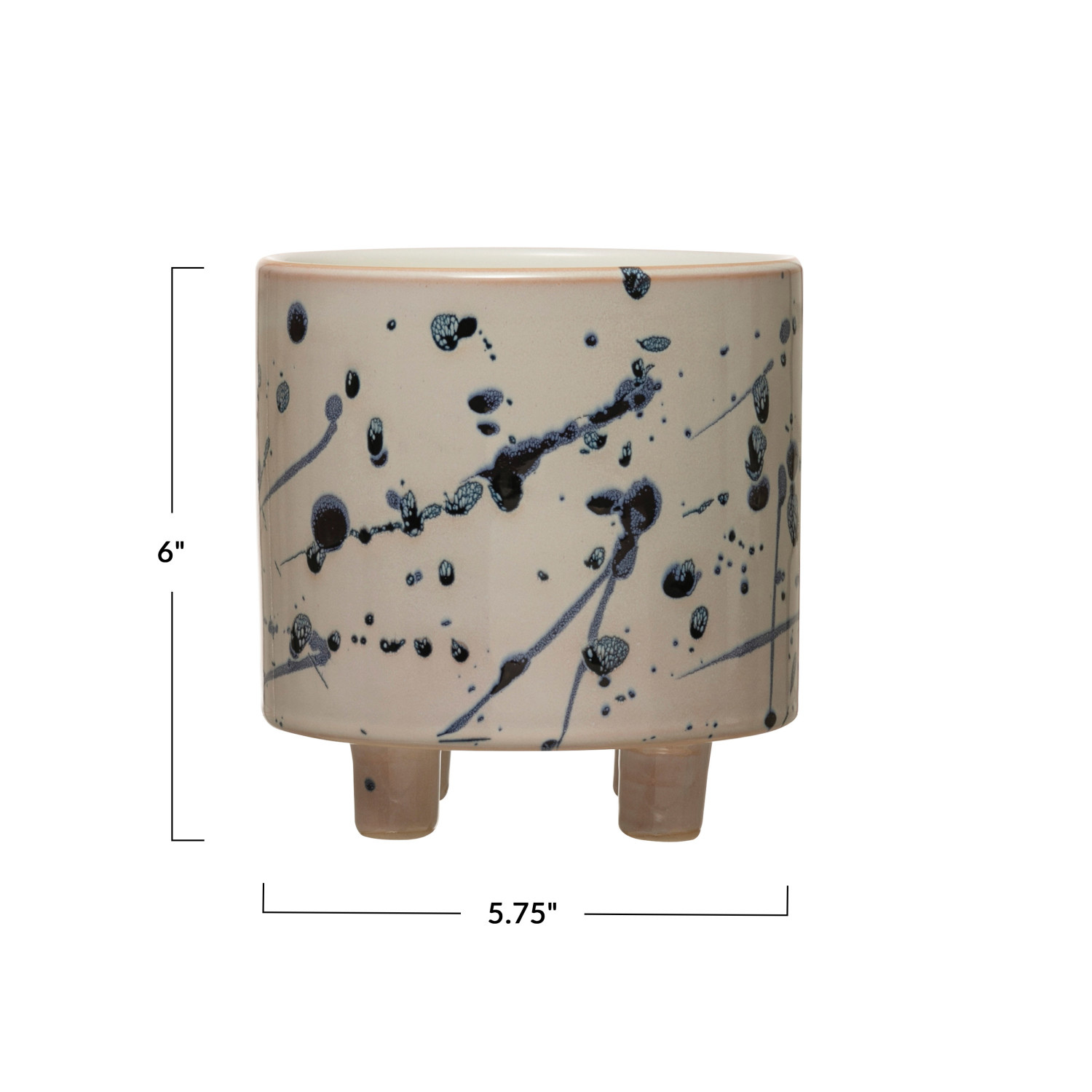 Catalog Name: 5-3/4" Round x 6"H Stoneware Footed Planter w/ Splatter Design, White & Blue (Holds 5" Pot)