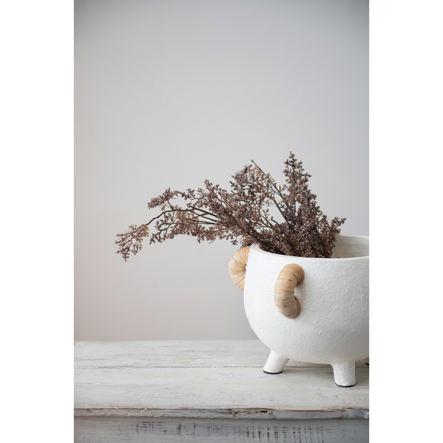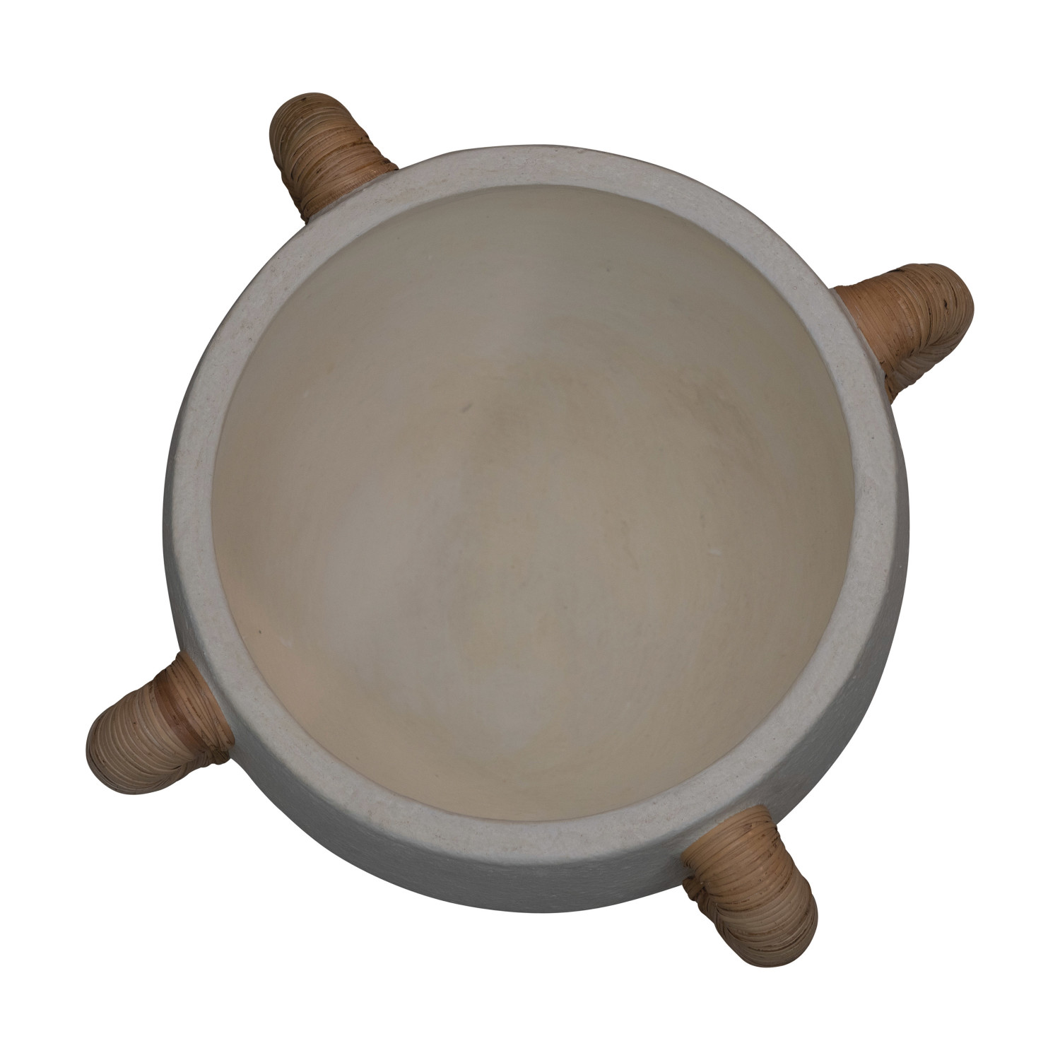 Terracotta Footed Planter, Rattan Wrapped Handles