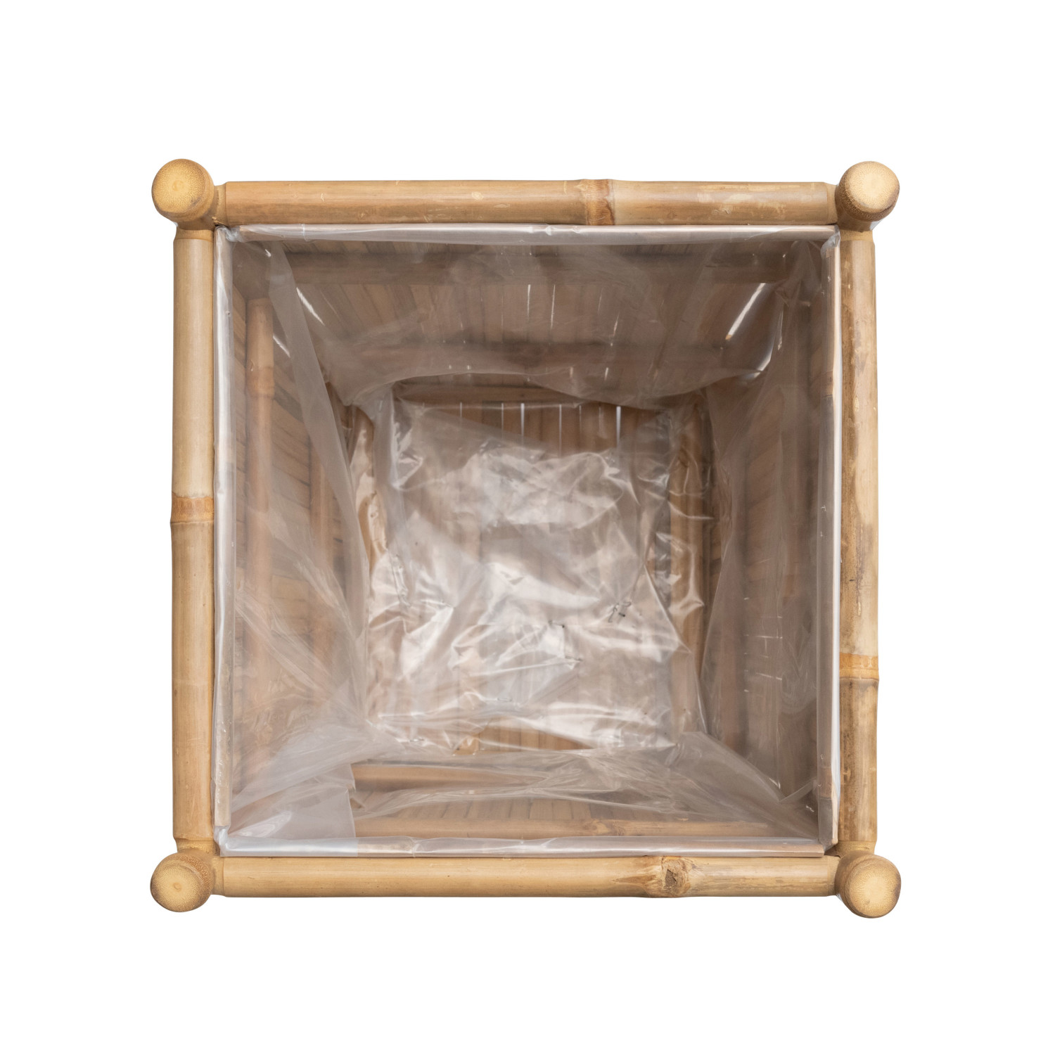 Catalog Name: 17" Square x 18"H Handmade Bamboo Footed Planter w/ Plastic Liner, Natural