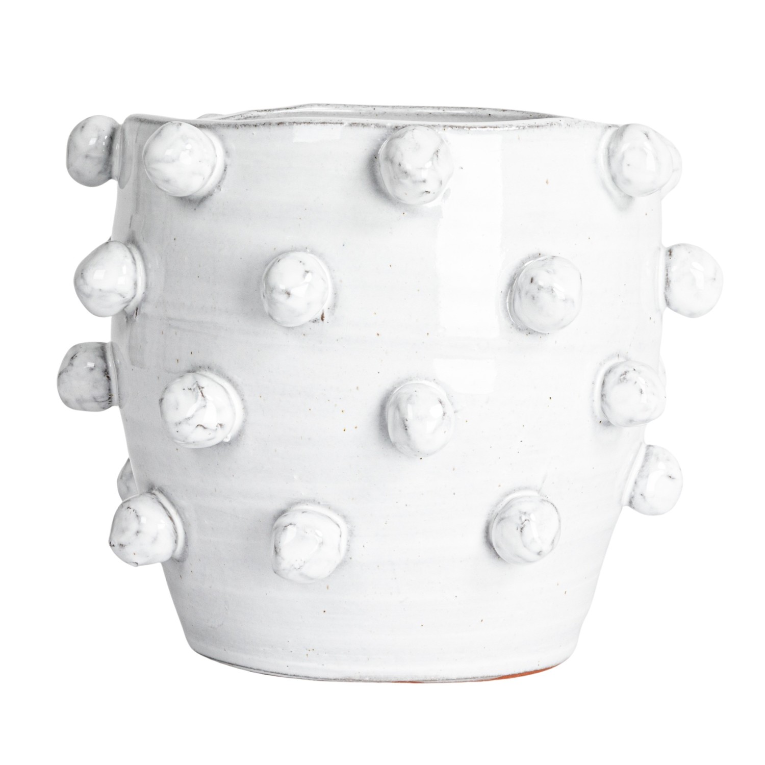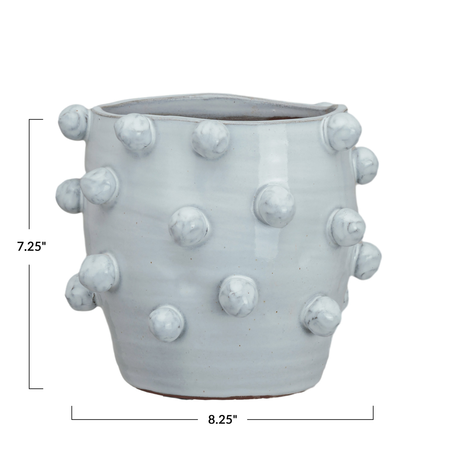 Catalog Name: 8-1/4" Round x 7-1/4"H Handmade Terra-cotta Hobnail Planter, White (Holds 7" Pot)