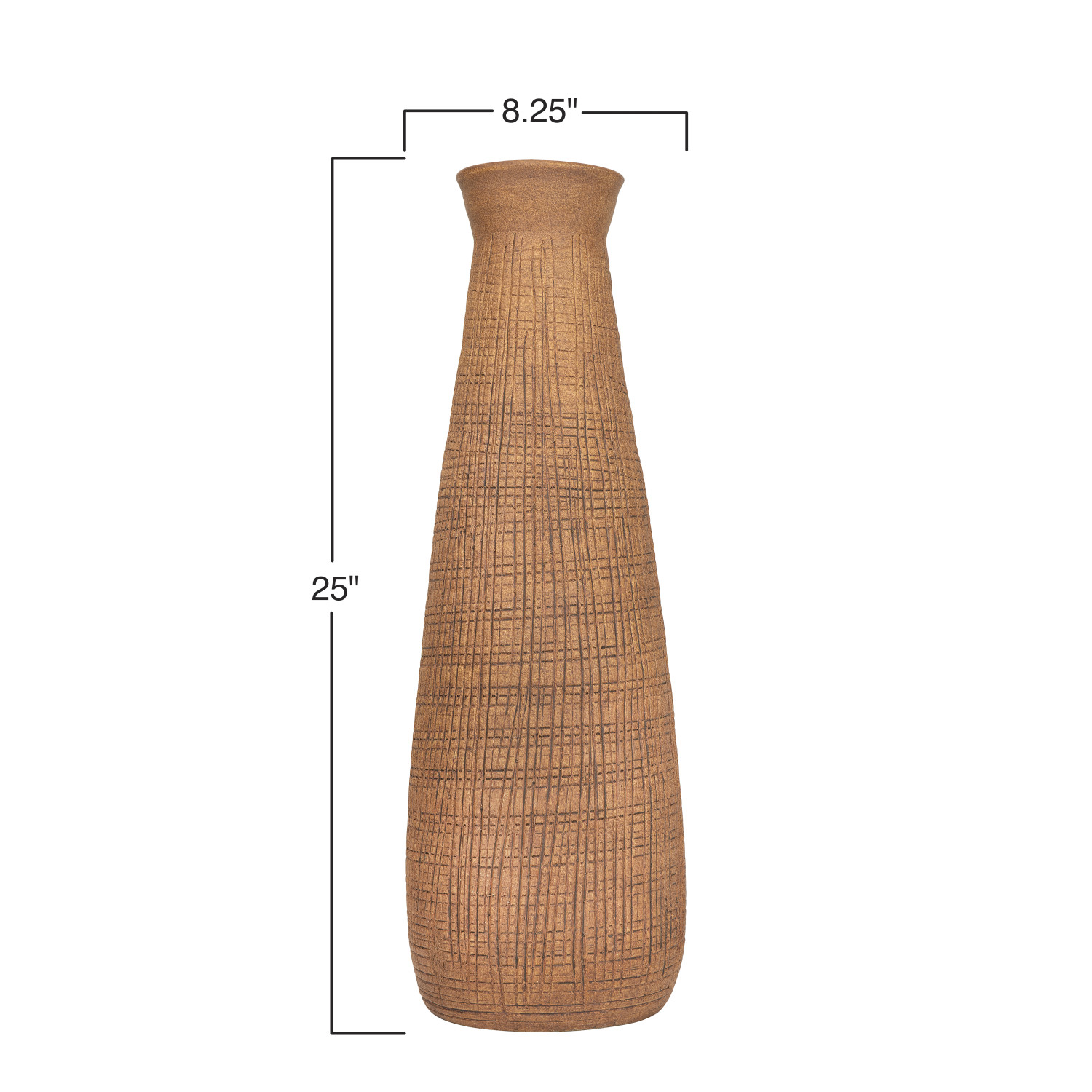 Catalog Name: 8-1/4" Round x 25-1/2"H Textured Terra-cotta Vase, Sienna Color, Truck Ship