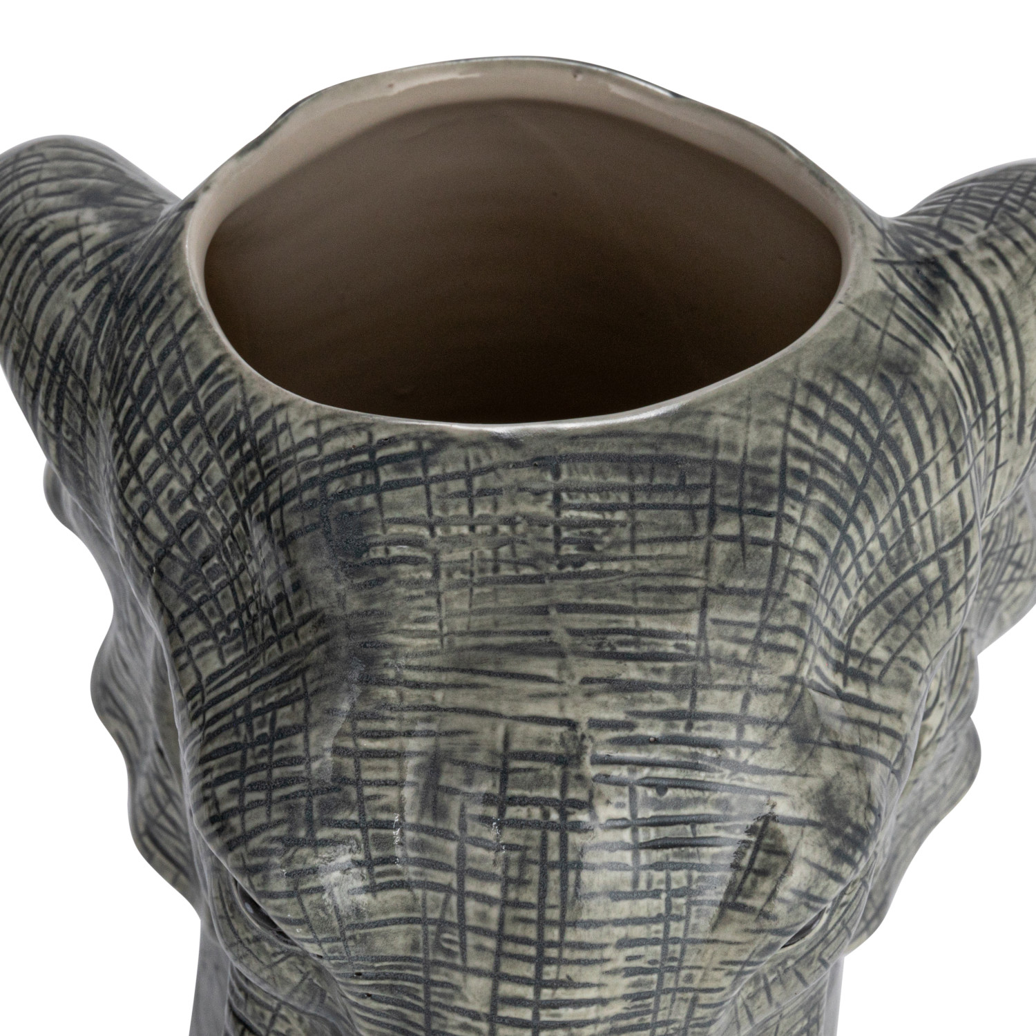 Catalog Name: 5-3/4"L x 5-1/2"W x 11"H Hand-Painted Stoneware Elephant Vase, Grey & White