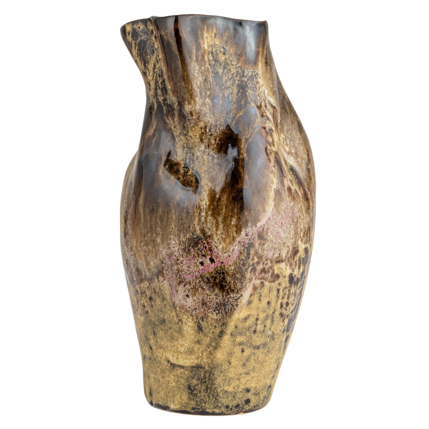 Catalog Name: 5-1/4"L x 5"W x 10-1/4"H Hand-Painted Stoneware Organic Shaped Vase, Reactive Glaze, Multi Color (Each One Will Vary)