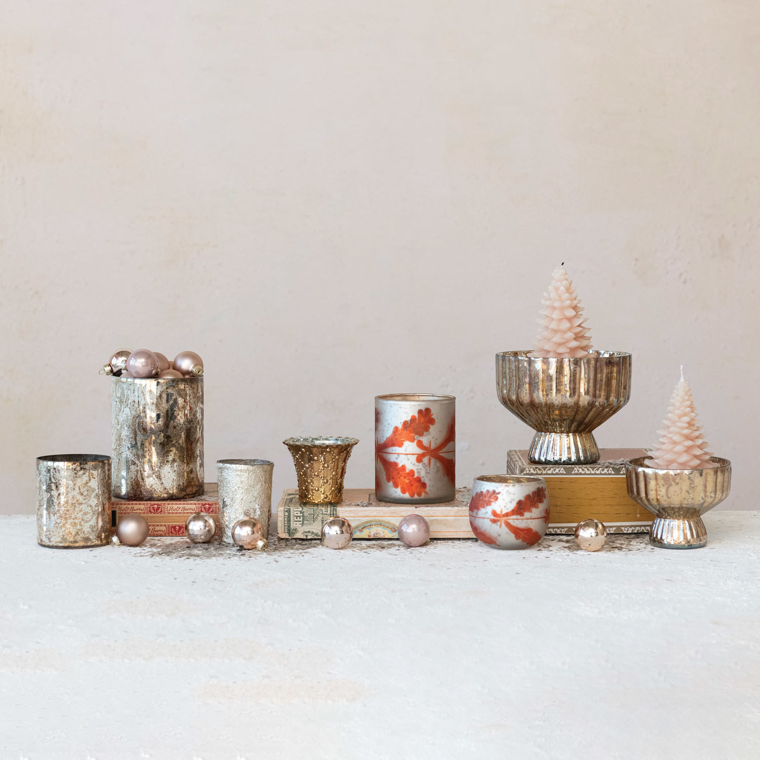 Etched Recycled Mercury Glass Tealight/Votive Holder