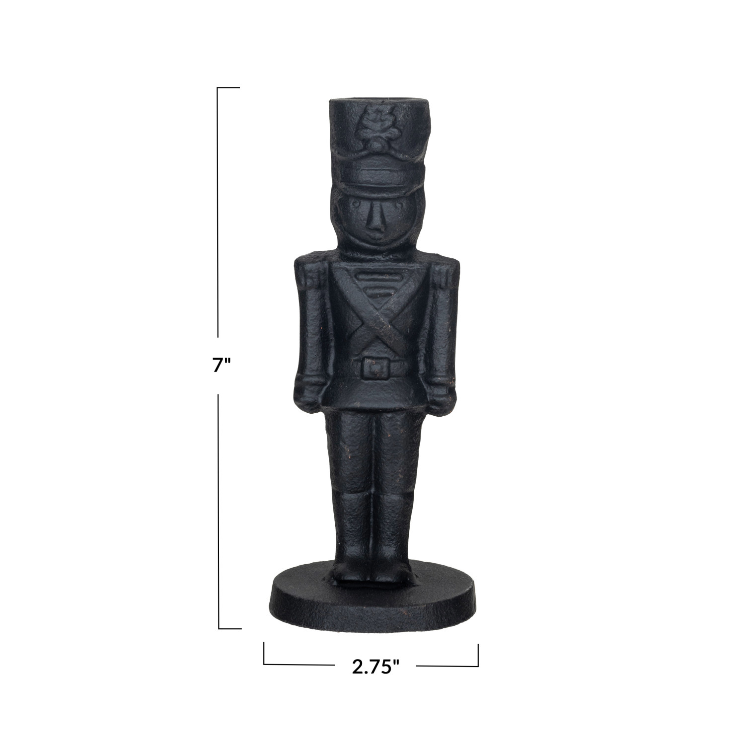 Catalog Name: 2-3/4" Round x 7"H Cast Iron Soldier Shaped Taper Holder, Black