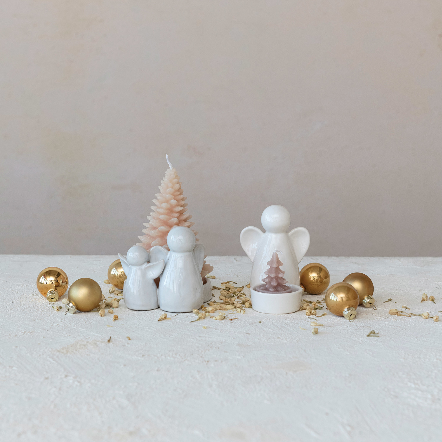 Catalog Name: 4"L x 3"W x 4"H Stoneware Angel Tealight Holder, White