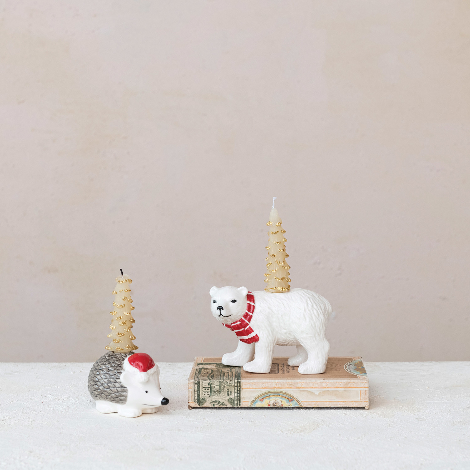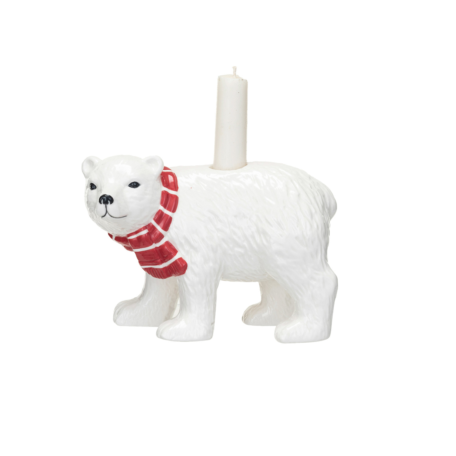 Stoneware Polar Bear Taper Holder w/ Scarf, White & Red ©