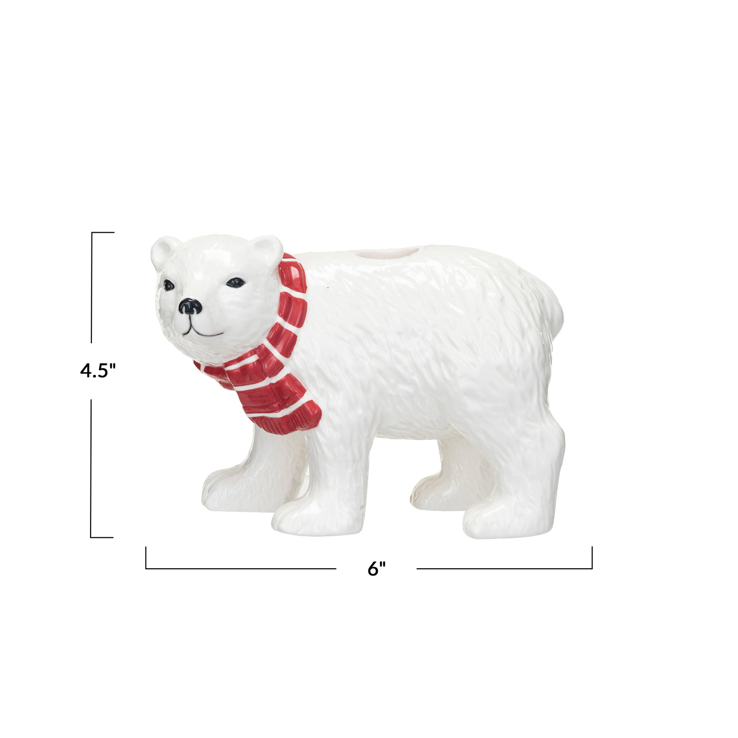Catalog Name: 6"L x 3"W x 4-1/2"H Stoneware Polar Bear Taper Holder w/ Scarf, White & Red ©