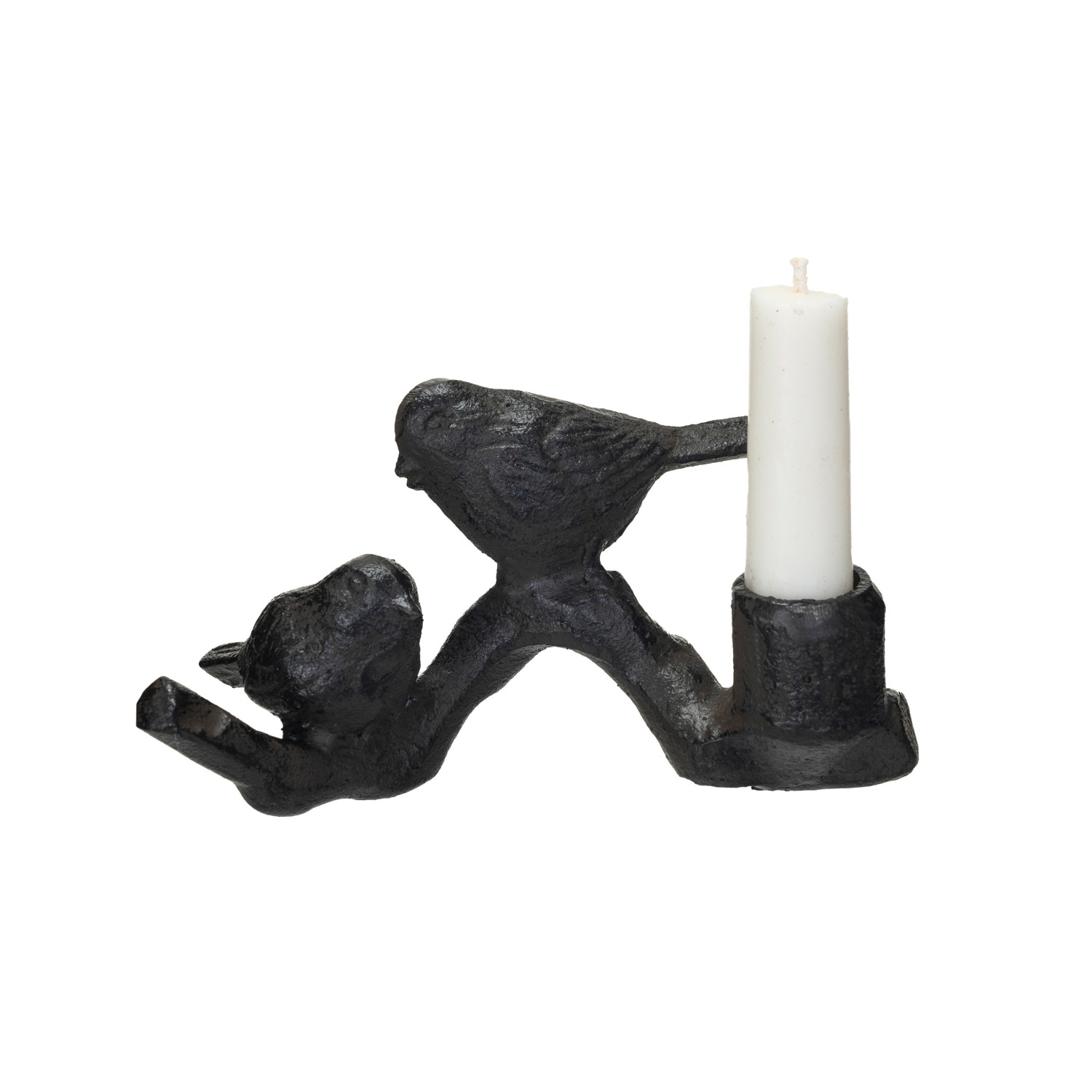 Catalog Name: 6-1/4"L x 2-1/2"W x 3-1/4"H Cast Iron Taper Holder w/ Birds on Branch, Black/Brown