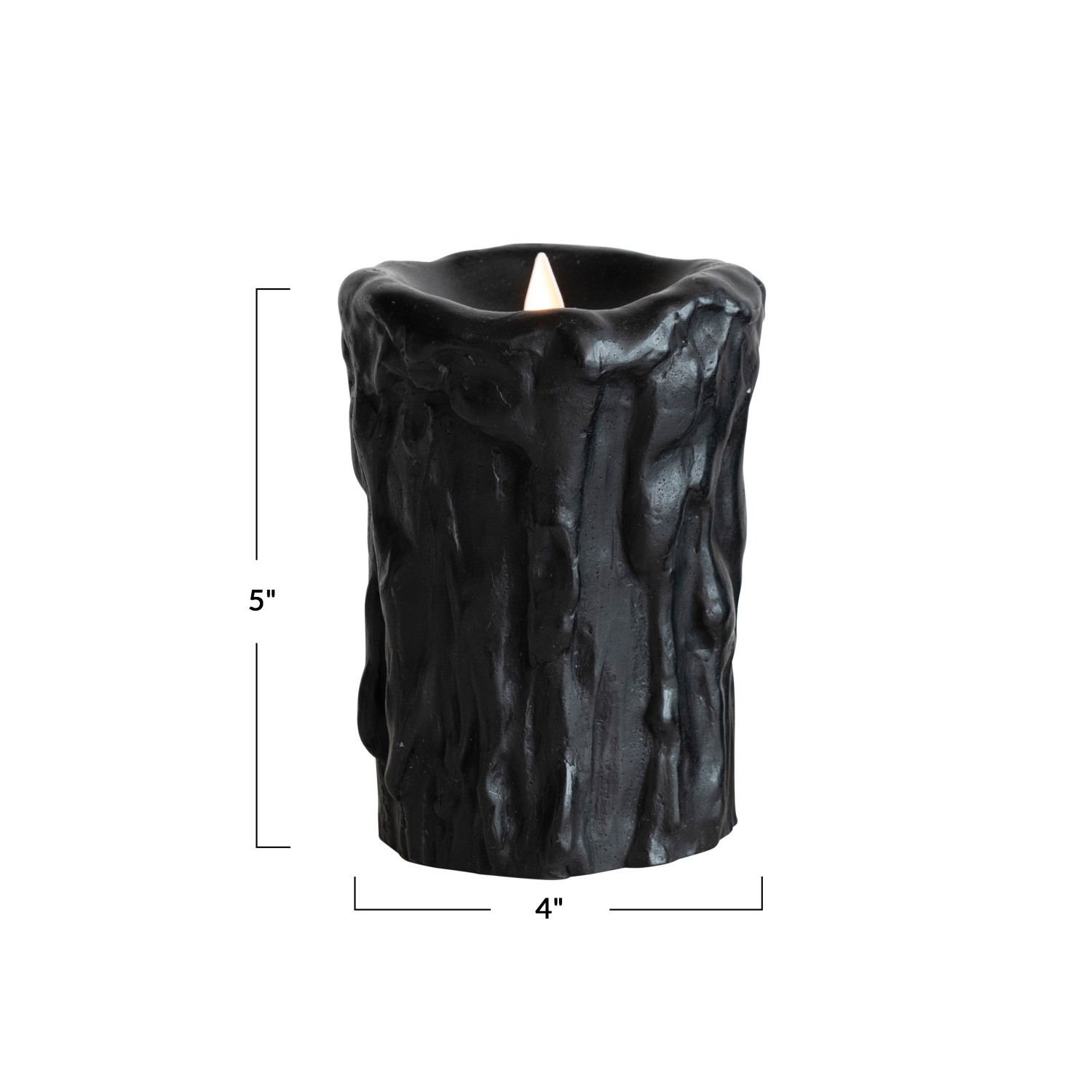5"H Flameless LED Wax Pillar Candle w/ 6 Hour Timer, Black (Requires 3-AAA Batteries)