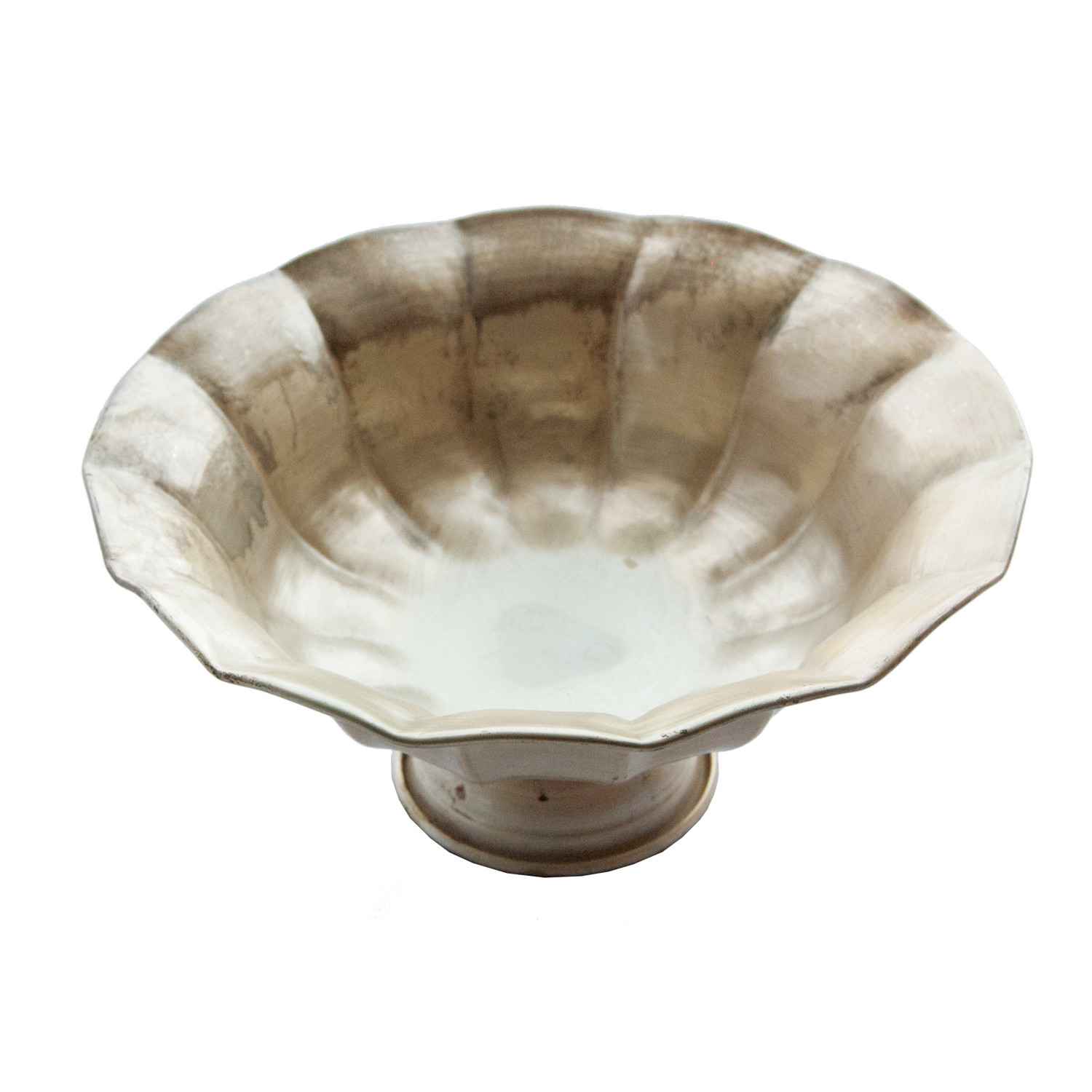 Decorative Metal Ruffled Footed Bowl, Distressed Gold Finish