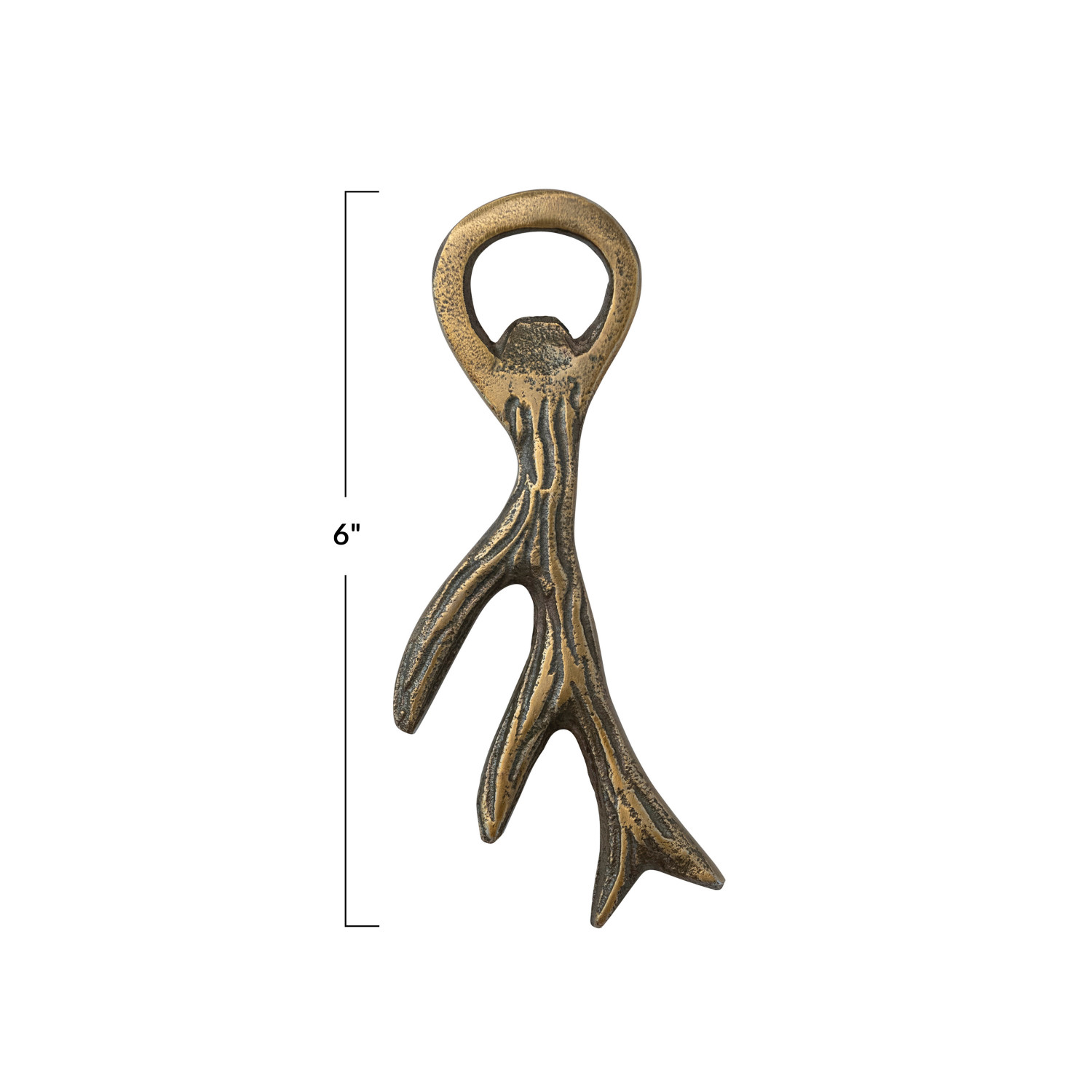 6"L Cast Aluminum Antler Bottle Opener, Antique Gold Finish