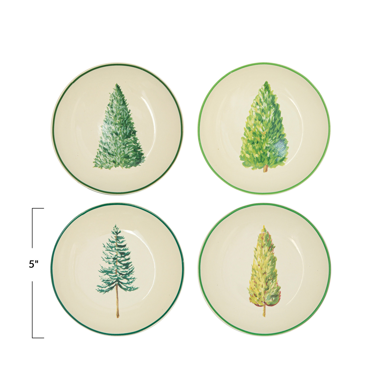5" Round Hand-Painted Stoneware Plate w/ Evergreens, 4 Styles