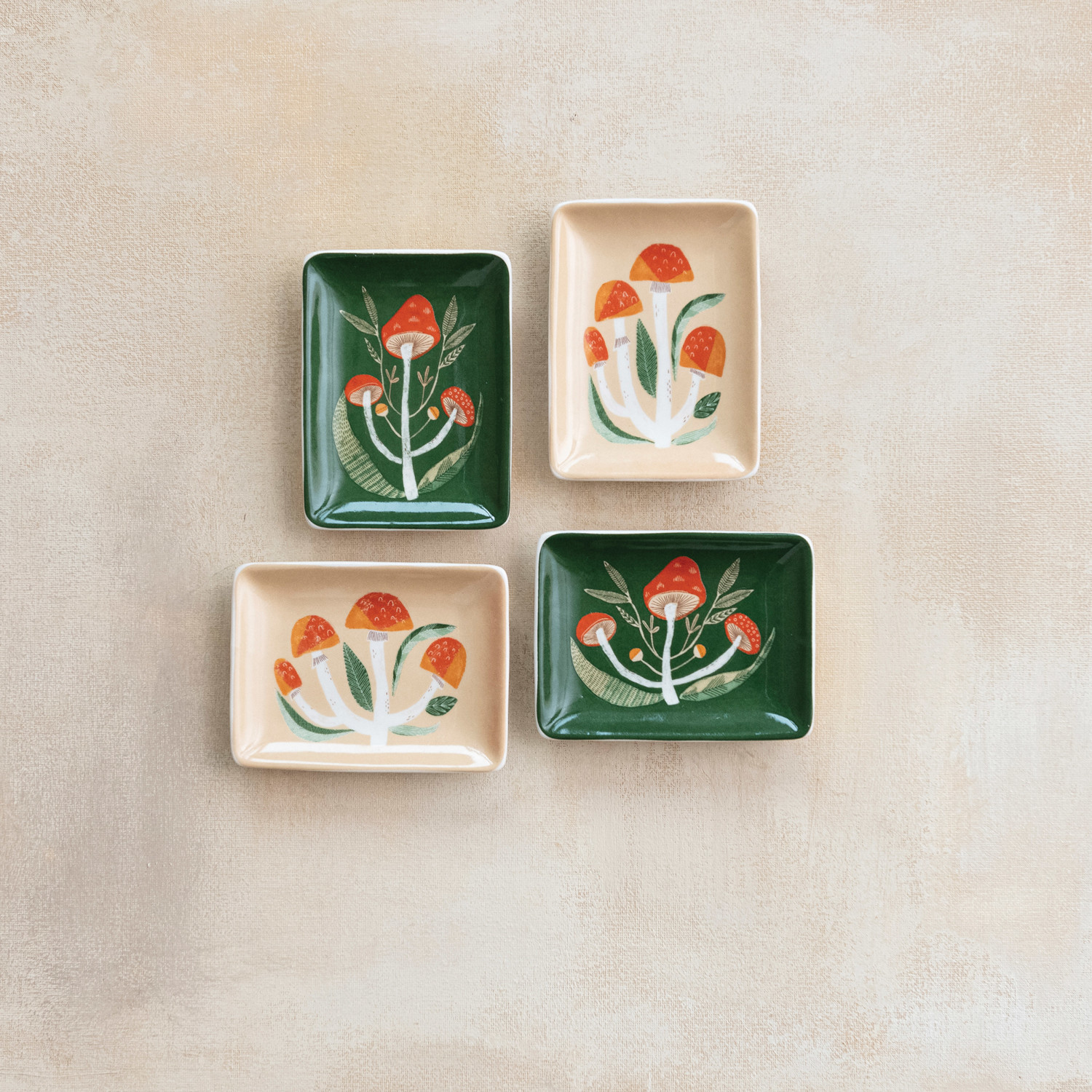Catalog Name: 4"L x 3"W Stoneware Dish w/ Mushroom Image, Multi Color, 2 Colors, 2 Styles ©