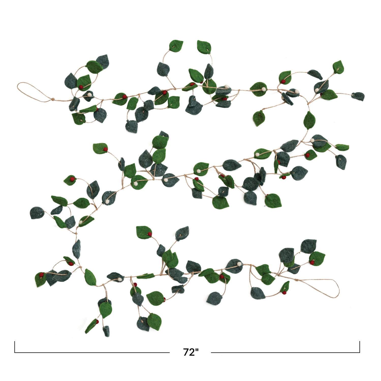 Catalog Name: 72"L Handmade Felt Garland w/ Leaves & Berries on Jute String, Green
